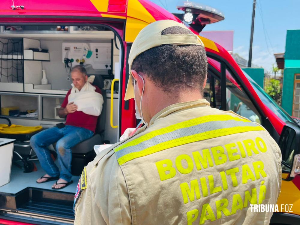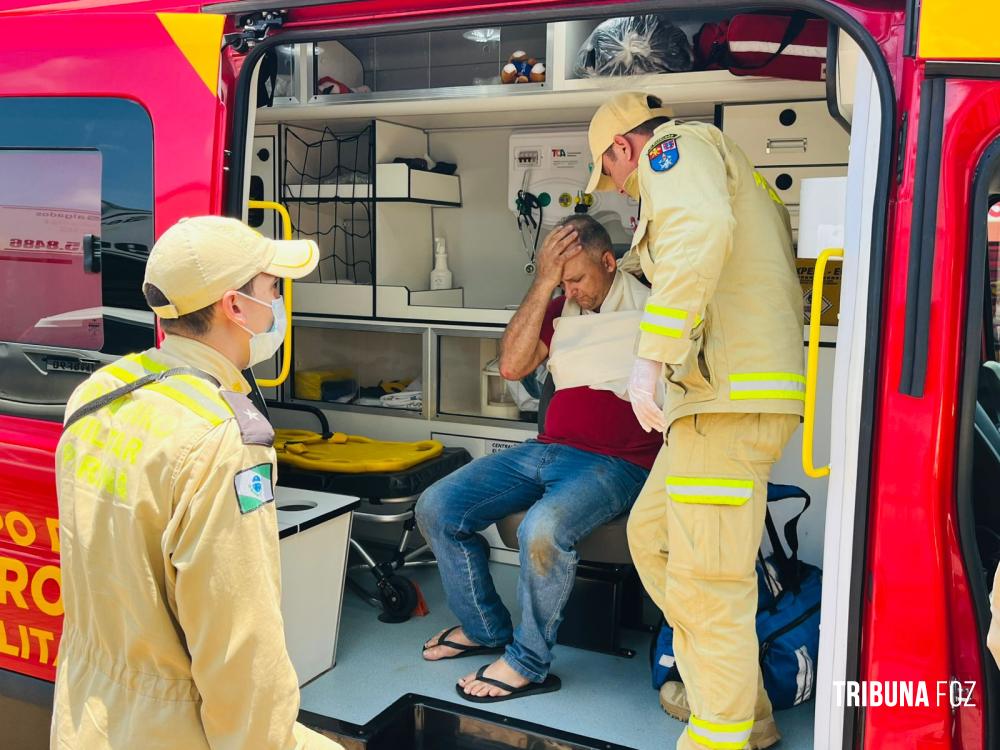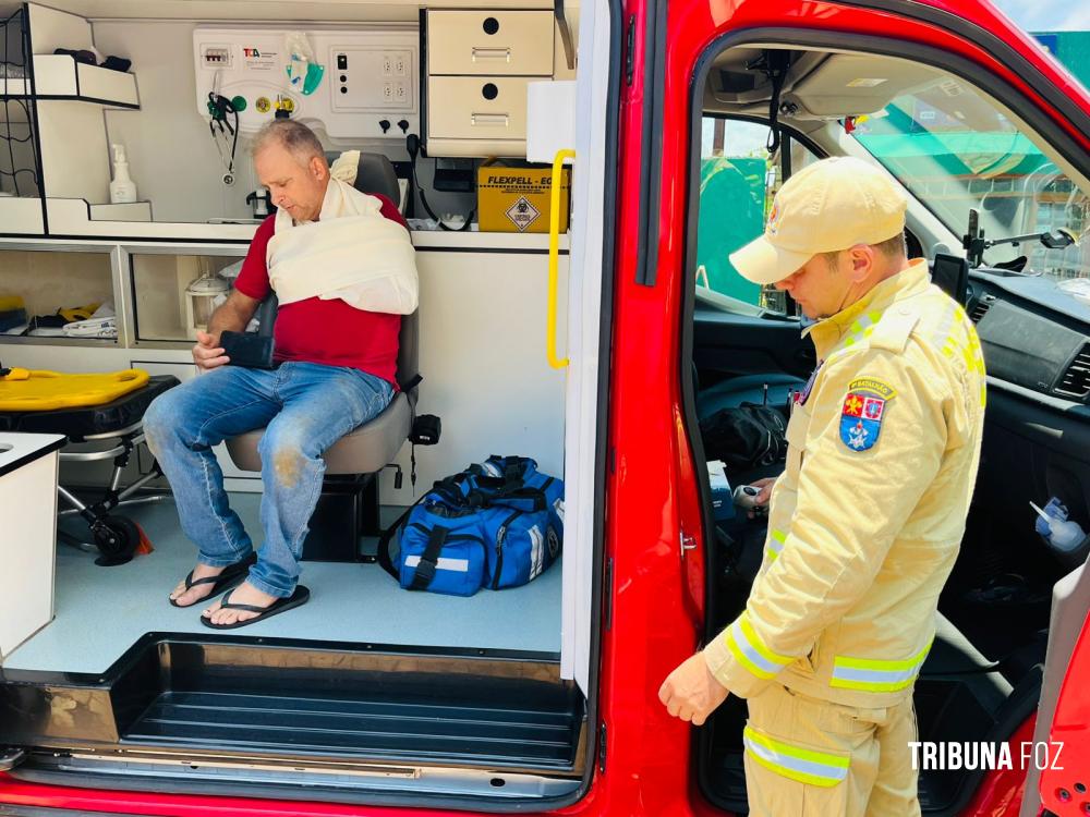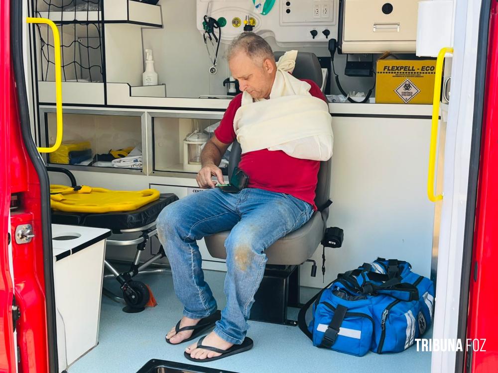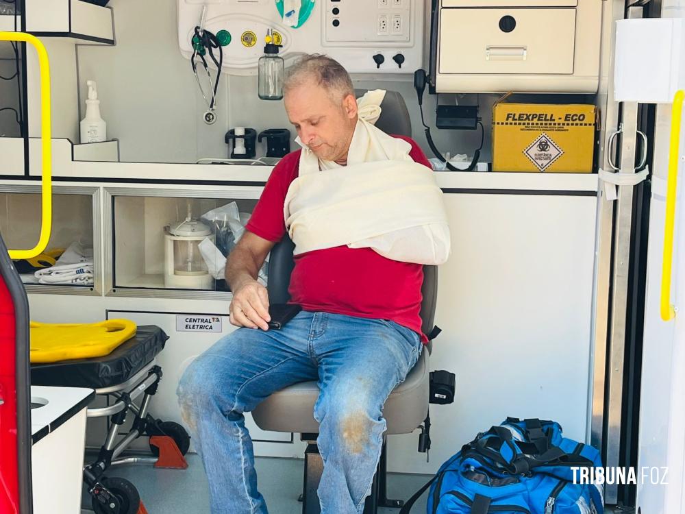 Ao chegar no local, os socorristas constataram que o homem estava consciente, porém se sentia tonto e apresentava ferimento em um dos braços. A vítima foi devidamente imobilizada e encaminhada para a UPA João Samek para avaliação médica.
