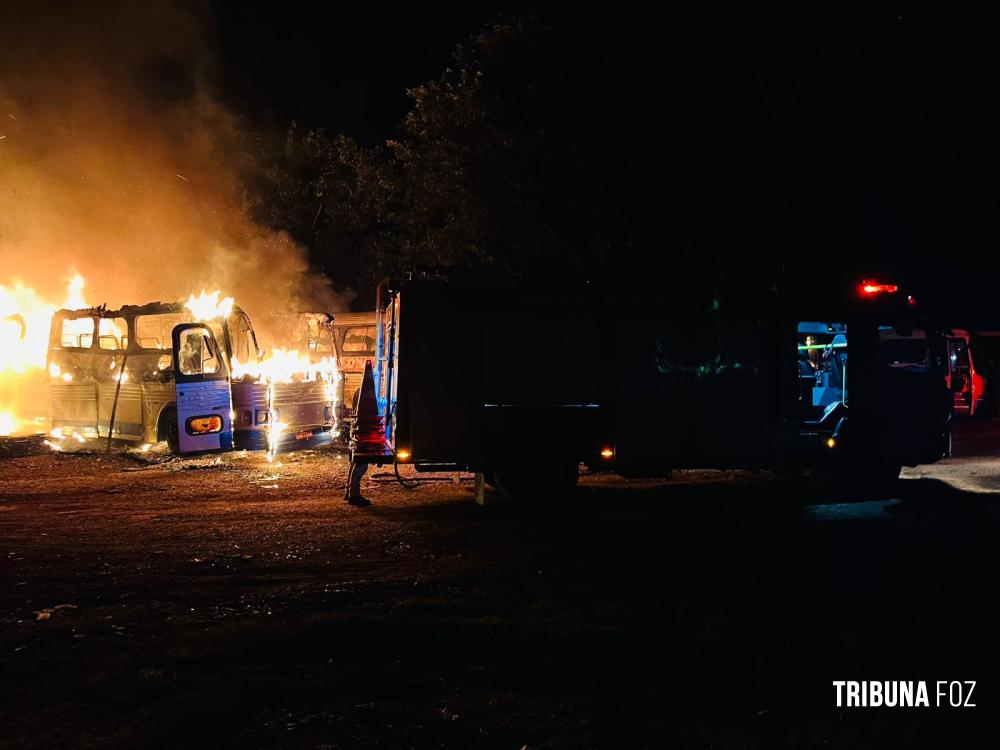 Segundo informações apuradas no local, há suspeita de ação criminosa, já que os ônibus estavam sem bateria e parados há cerca de três meses, o que reforça a possibilidade de o fogo ter sido provocado.