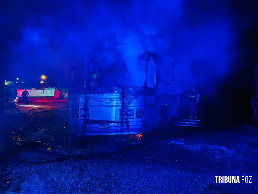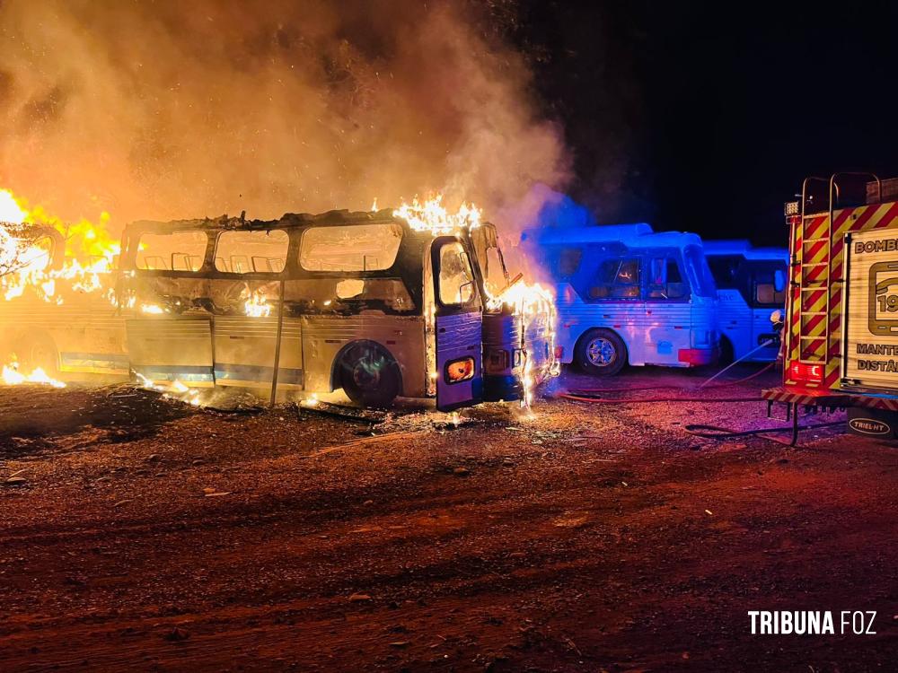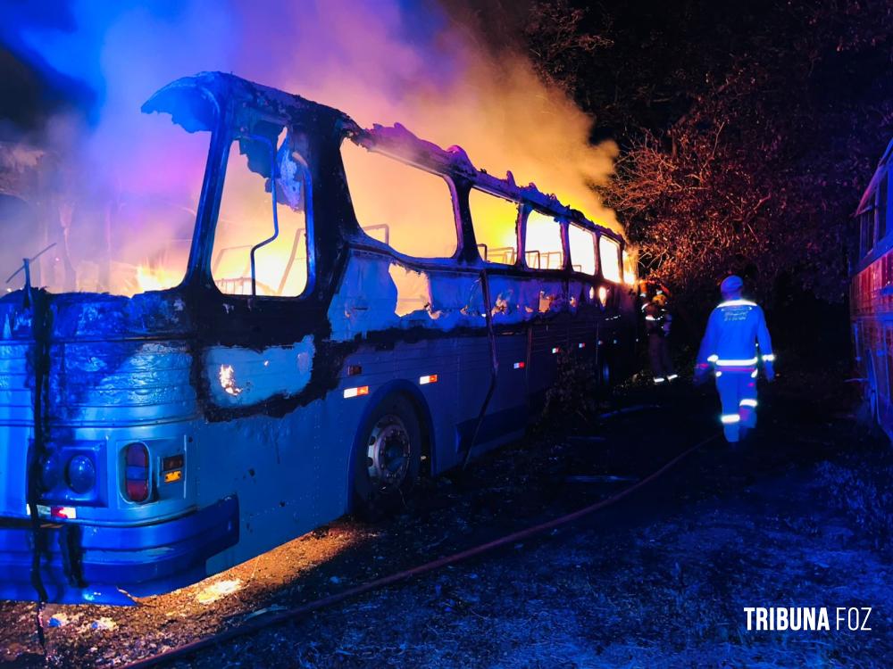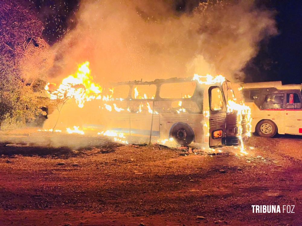 Incêndio atinge ônibus em pátio privado as margens da BR-277 no Bairro Três Lagoas
