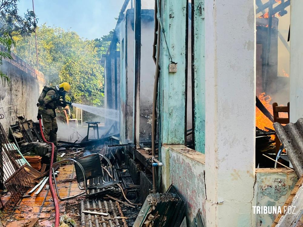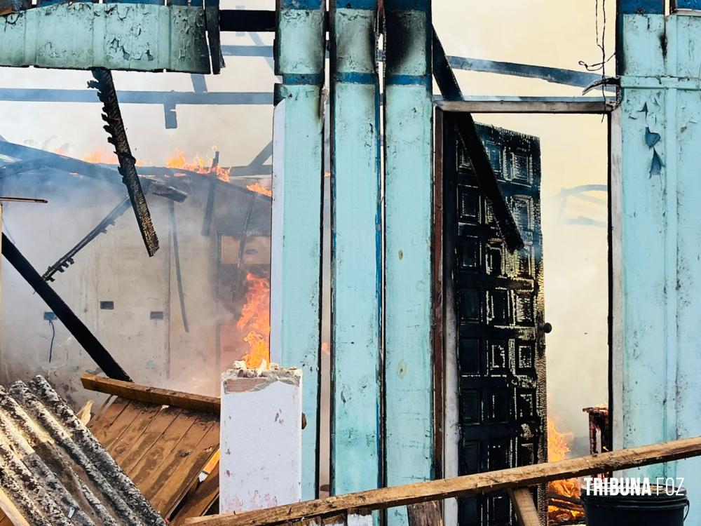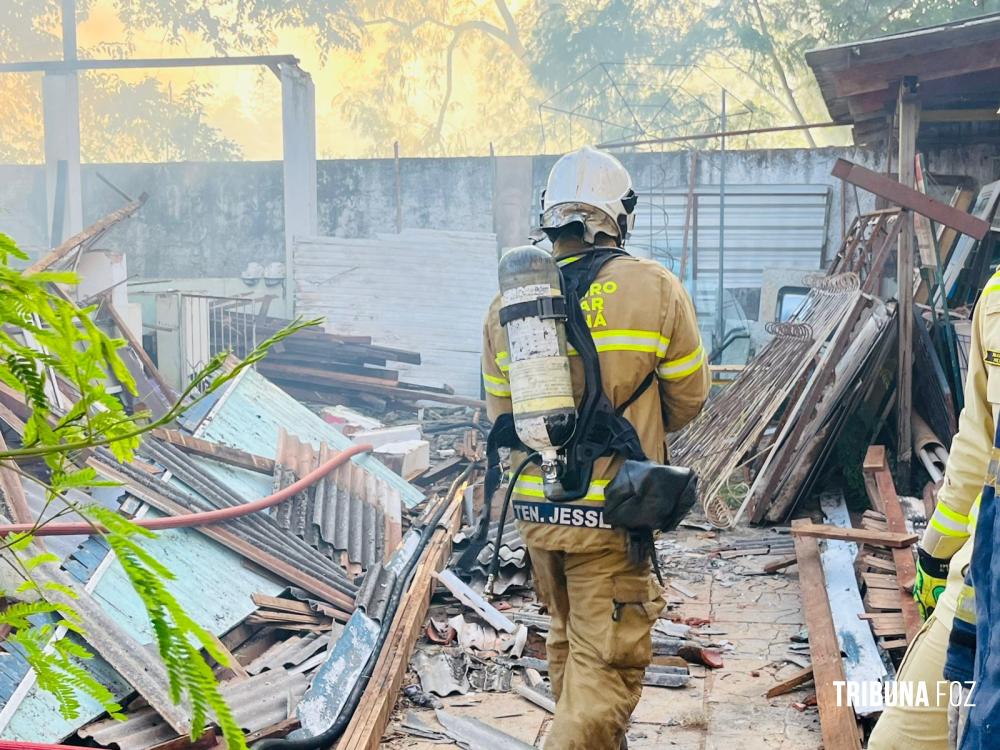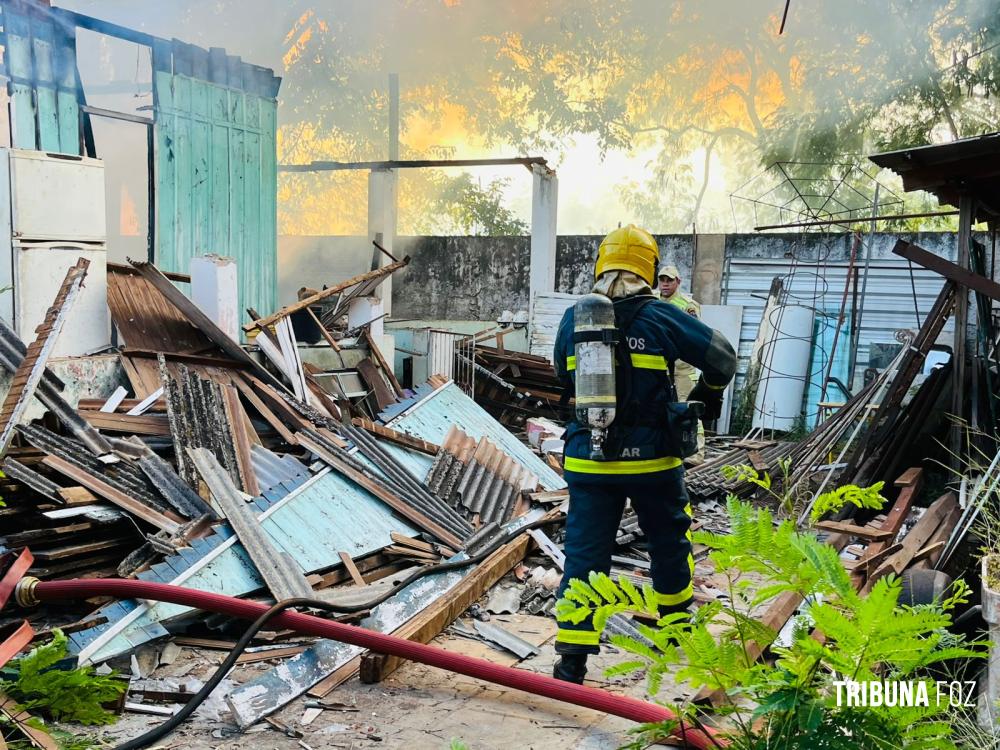 No final da tarde de ontem, sexta-feira 06 de fevereiro de 2026, equipes do Corpo de Bombeiros foram acionados para deslocarem até um beco no bairro Jardim América, onde uma casa de madeira que estava sendo desmontada e acabou pegando fogo.