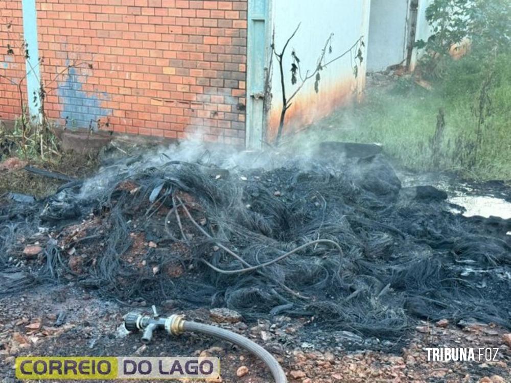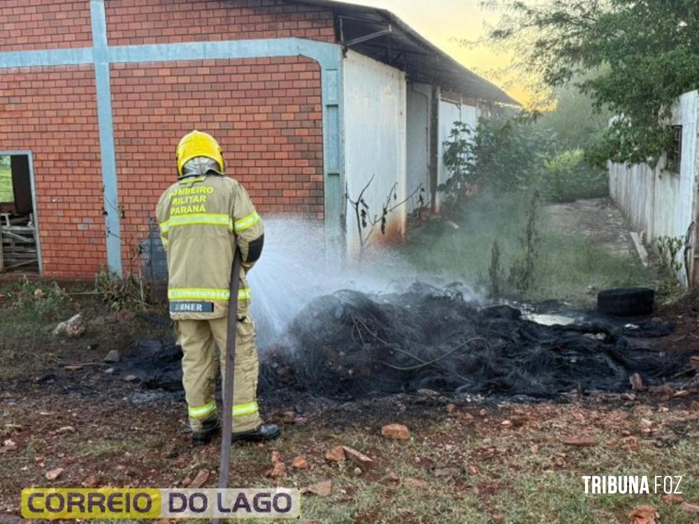 A ocorrência foi em uma antiga fecularia, onde uma pilha de pneus estava em chamas. O fogo foi controlado rapidamente pelas equipes, impedindo que as chamas se espalhassem e causassem danos à estrutura próxima.