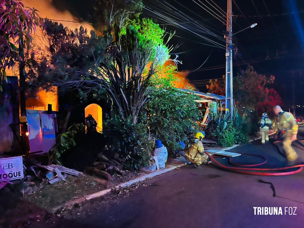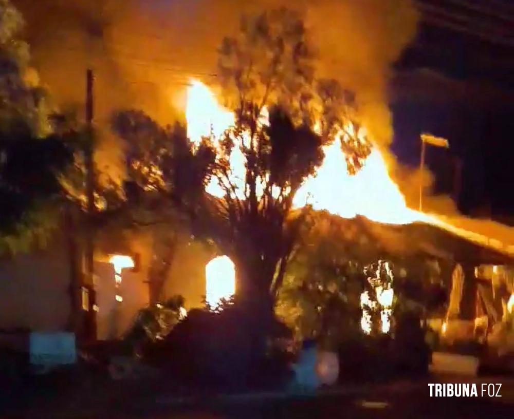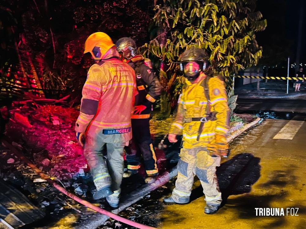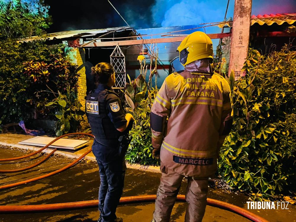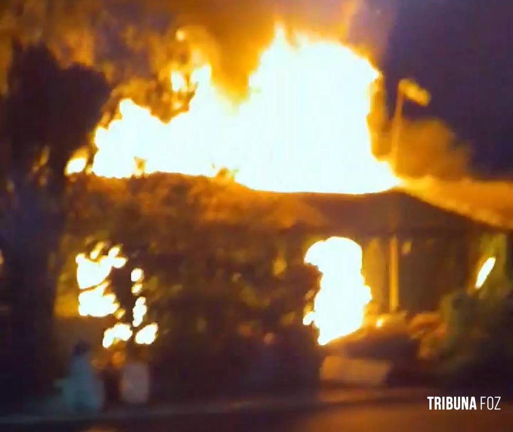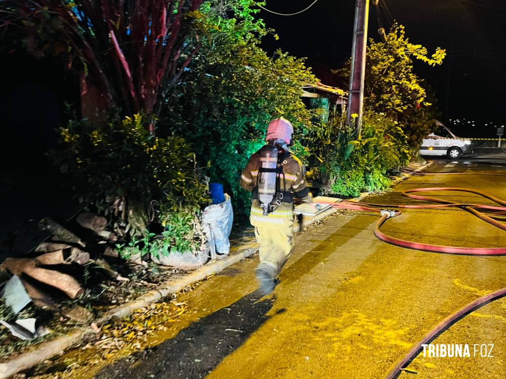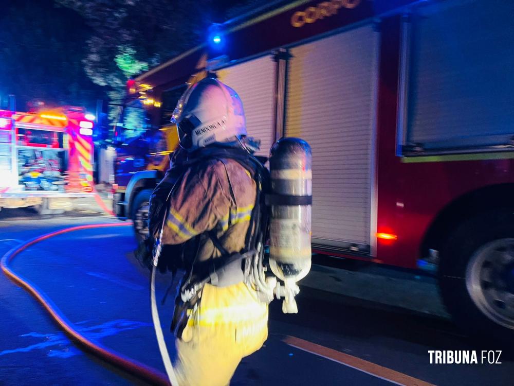 Na noite de ontem, segunda-feira 23 de fevereiro de 2026, por volta das 20h:15min, equipes do Corpo de Bombeiros, com apoio de três viaturas ABTR (Auto Bomba Tanque e Resgate), foram acionadas para deslocarem até a Rua Guariba, no bairro Jardim das Palmeiras, em Foz do Iguaçu, para atenderem a uma ocorrência de incêndio em residência.