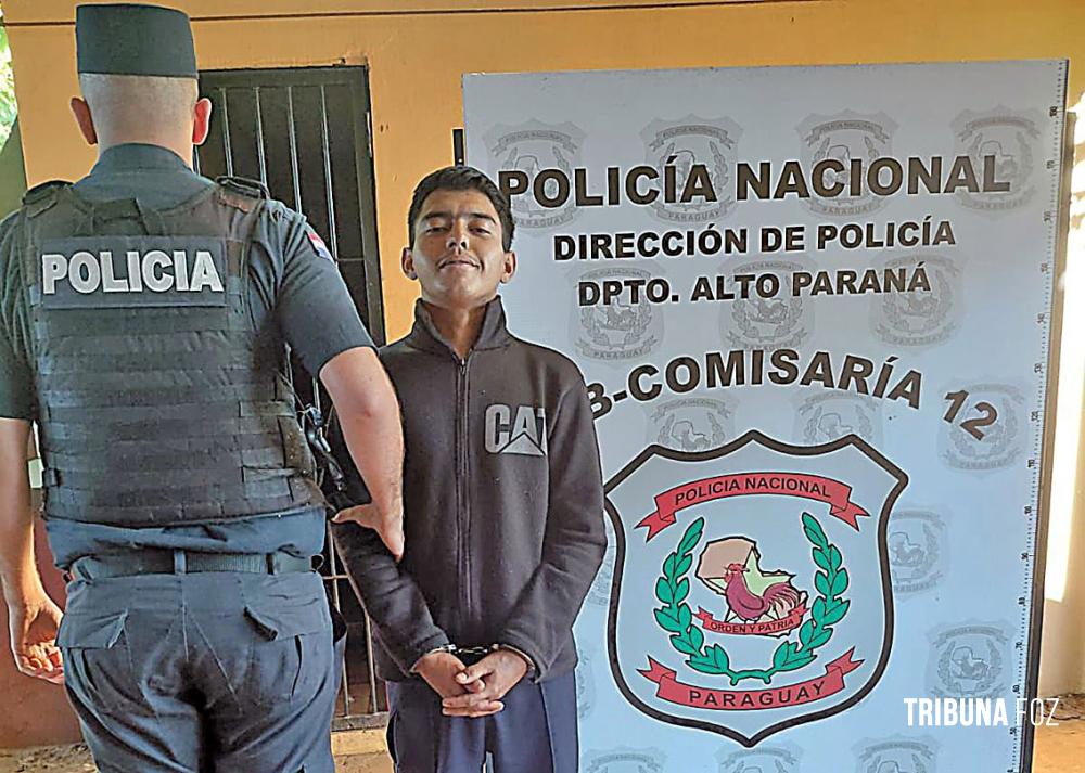 Um jovem foi preso na manhã de ontem, sexta-feira 10 de abril de 2026, no assentamento Renacer, Km 7,5 em Ciudad del Este, no Paraguai, por supostamente ter cometido violência doméstica e incendiado intencionalmente a motocicleta de seu padrasto.