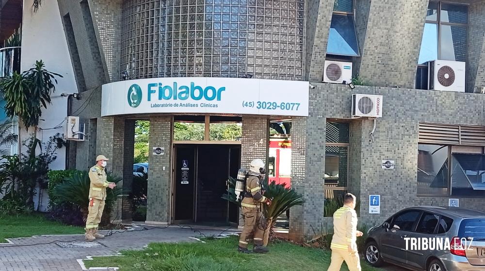 Laboratório que presta serviço para a Prefeitura de Foz pega fogo e mobiliza o Corpo de Bombeiros