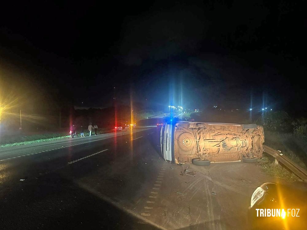 Microônibus universitário capota após pane mecânica no Paraguai; Dez estudantes escapam ilesos