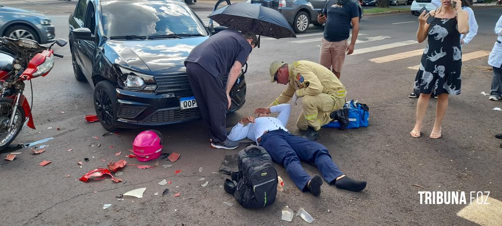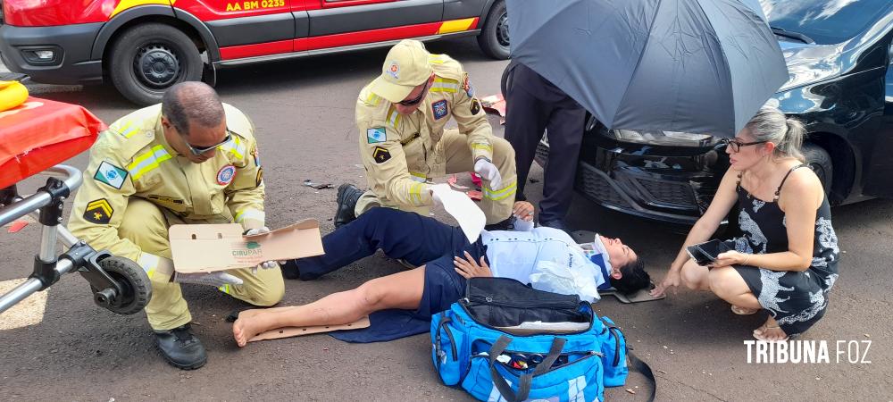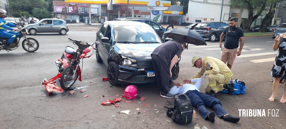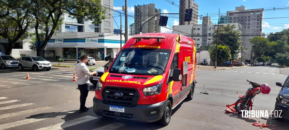Na tarde de ontem, terça-feira 10 de março de 2026, por volta das 15h:10min, socorristas do Siate de Foz do Iguaçu foram acionados para deslocarem até a Avenida Paraná, cruzamento com a Rua Xavier da Silva, região da Vila Maracanã, para darem atendimento a um acidente de trânsito, tipo colisão, envolvendo uma motocicleta e um automóvel.