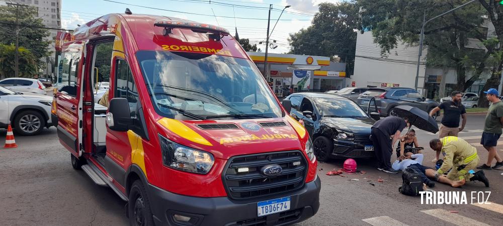 Motociclista é socorrida pelo Siate após colisão na Av. Paraná