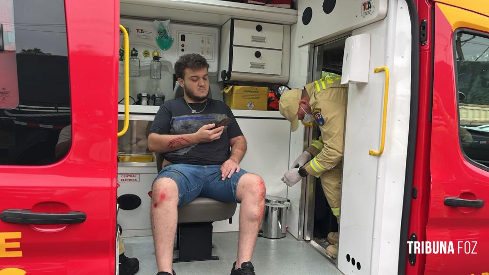 No local foi socorrido o motociclista que apresentava contusões, escoriações e uma possível fratura na mão, sendo encaminhado para o Pronto Socorro do Hospital Municipal.