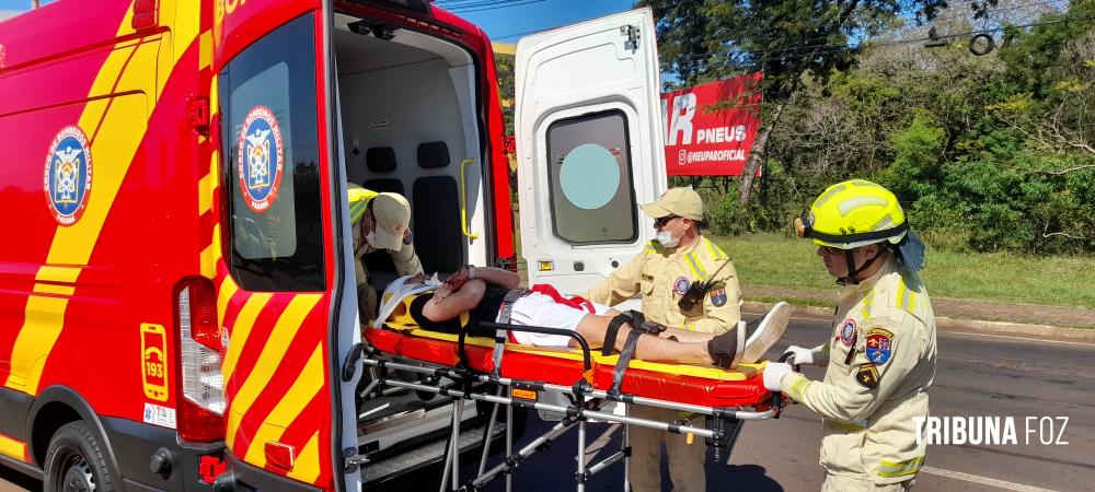 Motociclista é socorrido pelo Siate após colisão na Av. das Cataratas