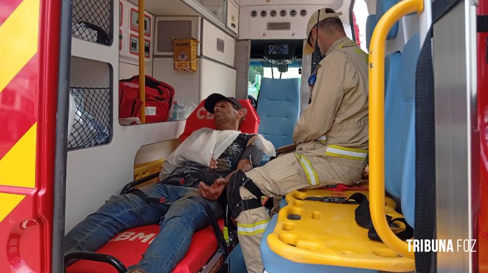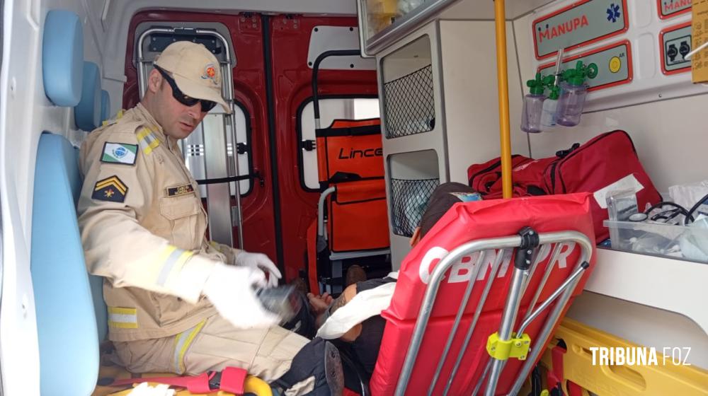Na tarde de ontem, sábado 08 de novembro de 2025, por volta das 13h:10min, socorristas do Siate (Sistema Integrado de Atendimento ao Trauma e Emergência) do Corpo de Bombeiros de Foz do Iguaçu foram acionados para deslocarem até a Avenida Morenitas, quase cruzamento com a Avenida General Meira, nas proximidades do Parque Remador, no Bairro Porto Meira, para darem atendimento a uma ocorrência de acidente de trânsito, tipo queda de motocicleta.