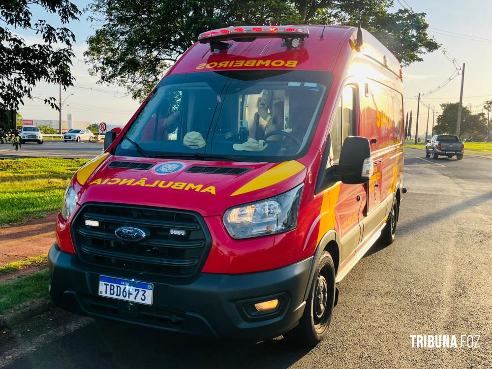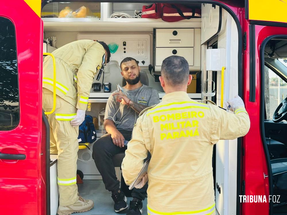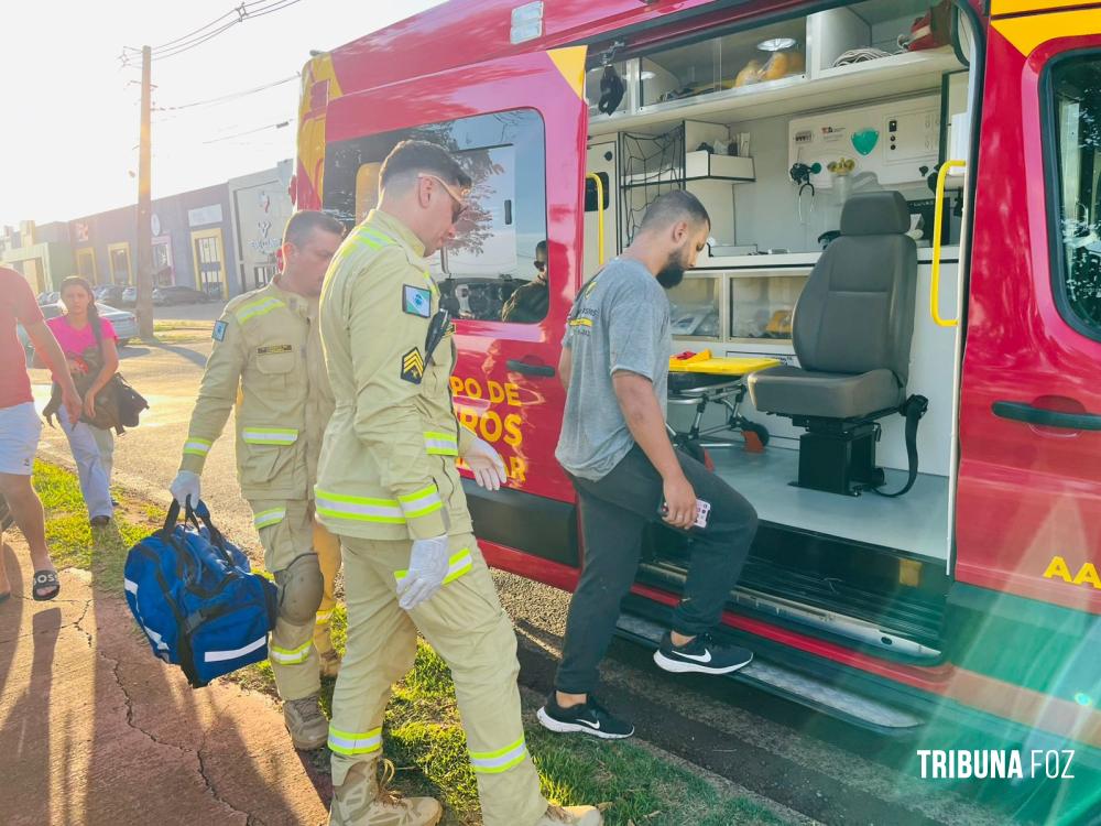 No final da tarde de ontem, quarta-feira 11 de fevereiro de 2026, uma equipe de socorristas do Siate de Foz do Iguaçu foram acionados para deslocarem até a marginal da BR-277, para atenderem a uma colisão envolvendo uma motocicleta e um automóvel.