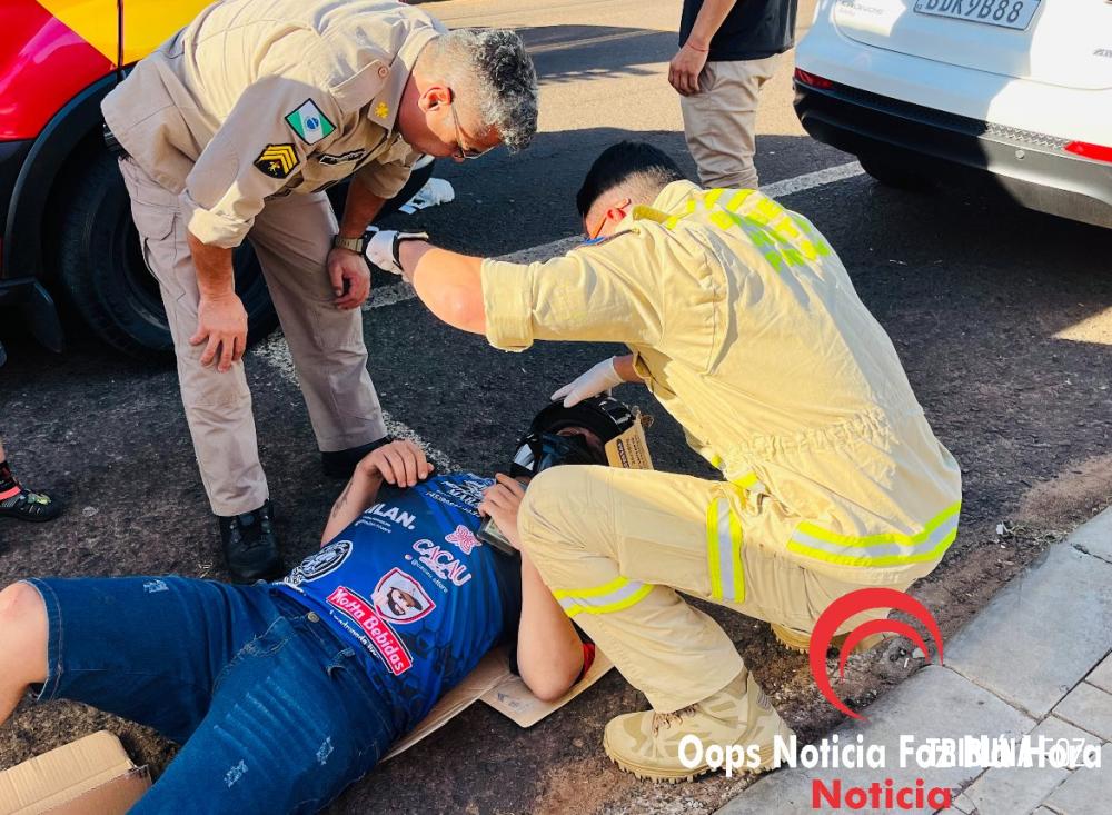 Na tarde de ontem, terça-feira 11 de novembro de 2025, uma equipe d socorristas do Siate foi acionados para se deslocarem até a Avenida Gramado, no Bairro Três Lagoas, para darem atendimento a uma colisão envolvendo uma motocicleta e um automóvel.