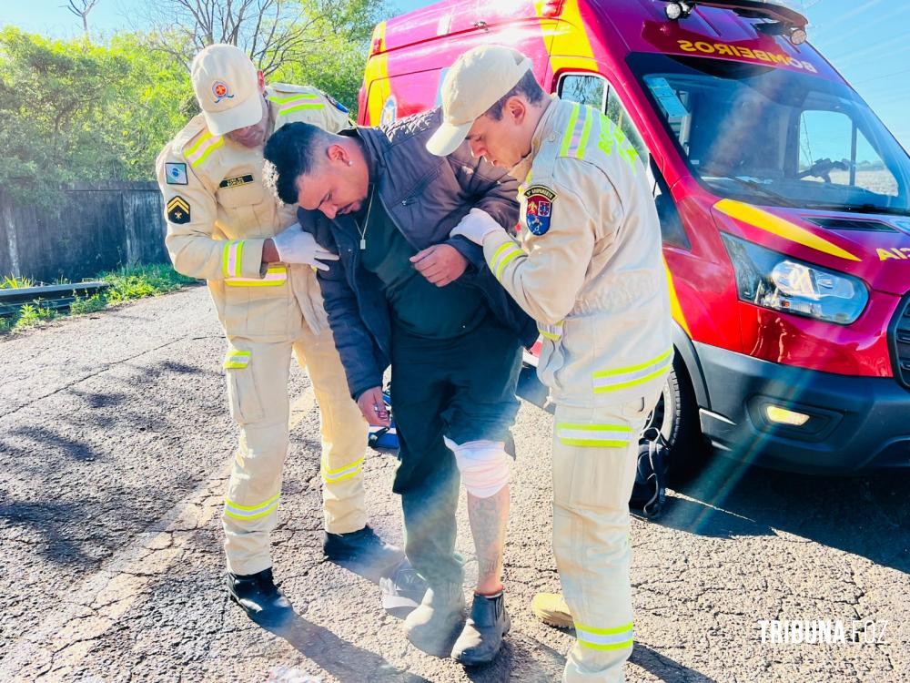 Segundo informações, o motociclista foi fechado por um caminhão, cujo condutor não parou para prestar socorro. A vítima sofreu escoriações, contusões e um corte contuso no joelho, sendo encaminhado para o Pronto Socorro do UPA João Samek.