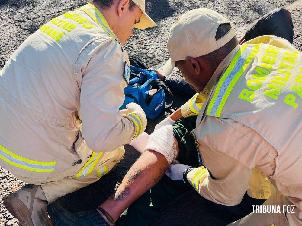 Na manhã desta quinta-feira, 25 de setembro de 2025, socorristas do Siate foram acionados para atenderem a uma queda de motocicleta na Avenida Fiorino Brol, região do Bairro Três Lagoas, em Foz do Iguaçu.
