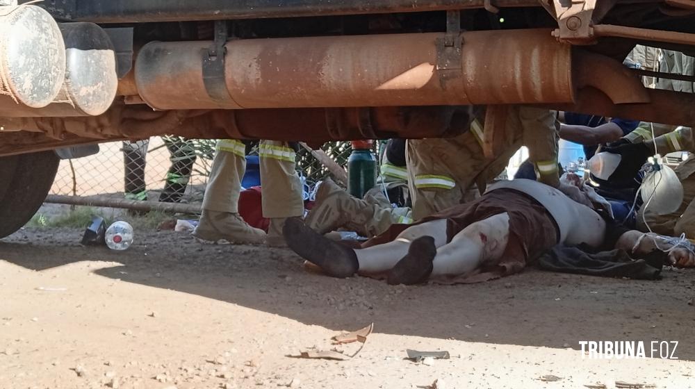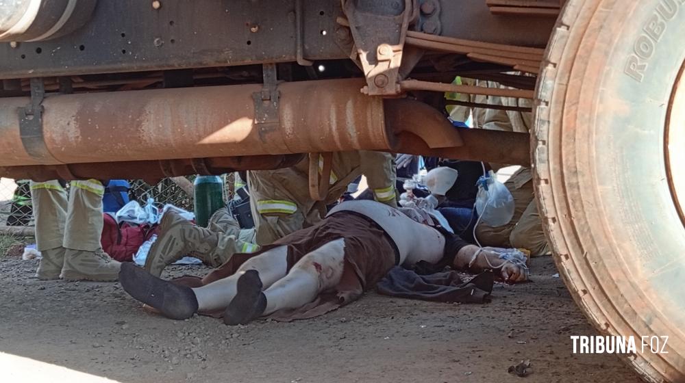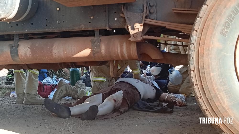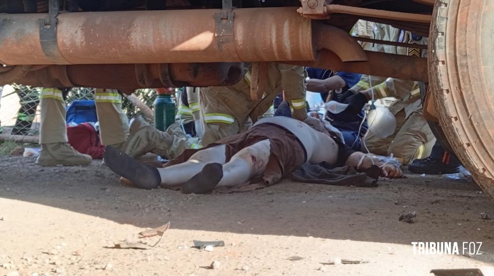 No final da tarde de ontem, segunda-feira 19 de janeiro de 2026, por volta das 17h:10min, equipes de socorristas do SIATE, médico de área, oficial de área e uma viatura ABTR (Auto Bomba Tanque e Resgate) foram acionados para atenderem a um grave acidente de trânsito na Avenida das Cataratas, quase cruzamento com a Rua Itaborai, nas proximidades do Museu de Cera, envolvendo uma motocicleta e um caminhão caçamba.