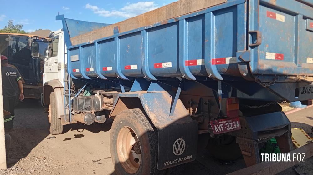 No local foi constatado que o caminhão caçamba que transporta pedra brita possivelmente para a obra de duplicação da Avenida das Cataratas, quando ao tentar entrar no depósito de resíduos da DALBA, acabou fechando o motociclista que trafegava na mesma via na pista de baixa velocidade.