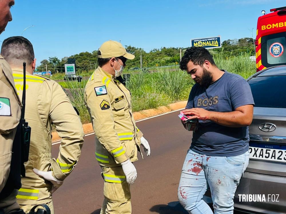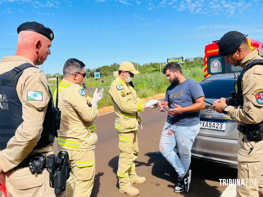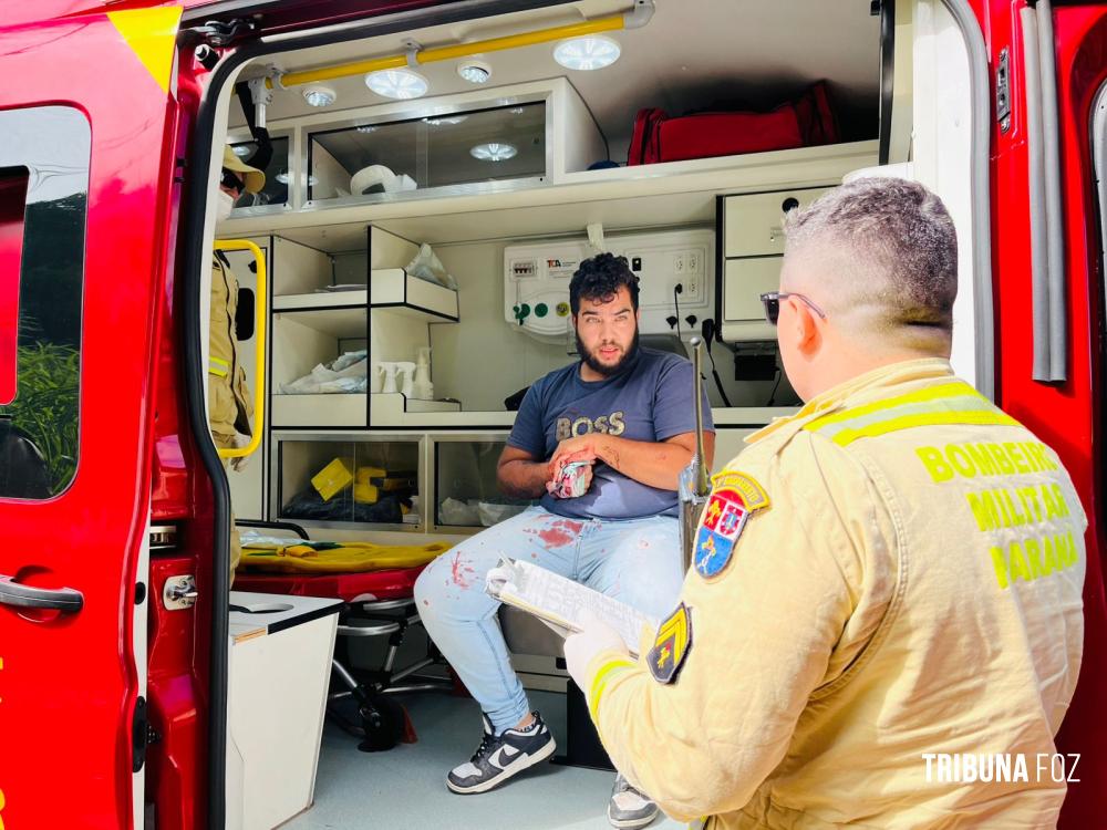 No início da tarde desta terça-feira, 28 de abril de 2026, socorristas do SIATE foram acionados para se deslocarem até a saída de acesso à Perimetral Leste, nas proximidades da aduana da Argentina, em Foz do Iguaçu, para atenderem a uma ocorrência de ferimento por arma branca (FAB).