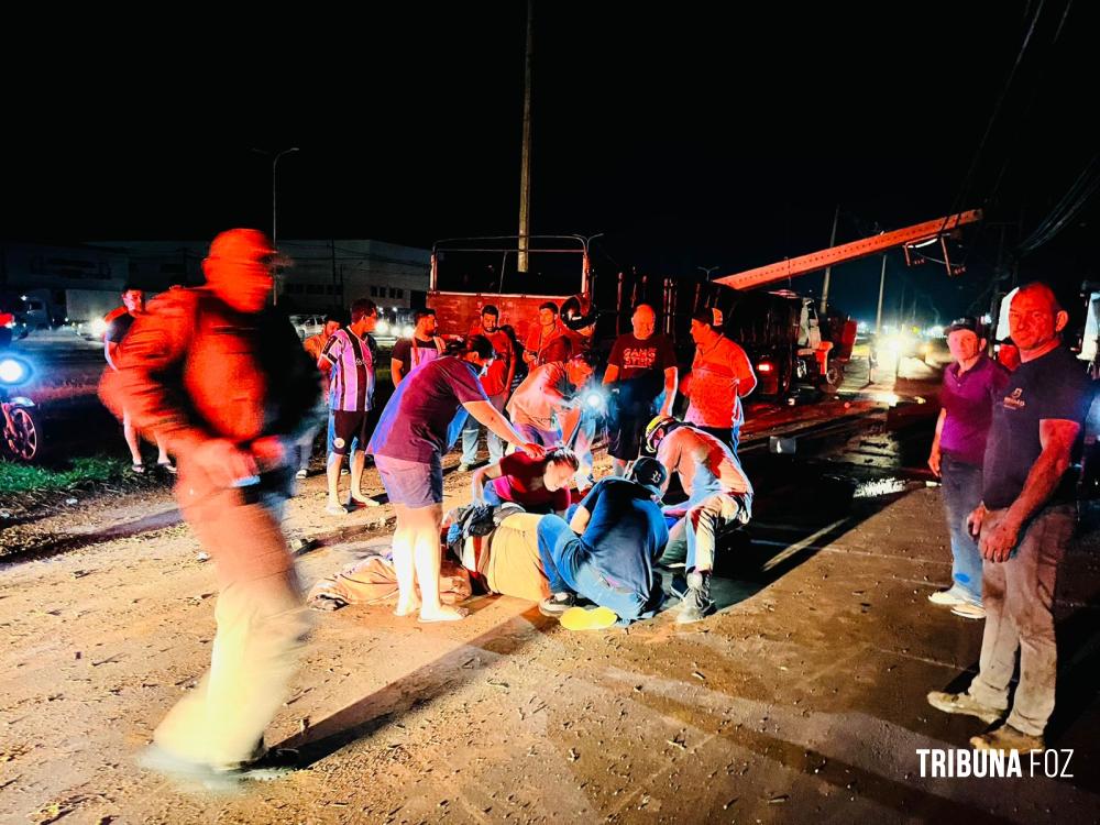 Com a queda, o motorista sofreu ferimentos e recebeu atendimento médico no local, sendo encaminhado ao Hospital Municipal de Foz do Iguaçu.