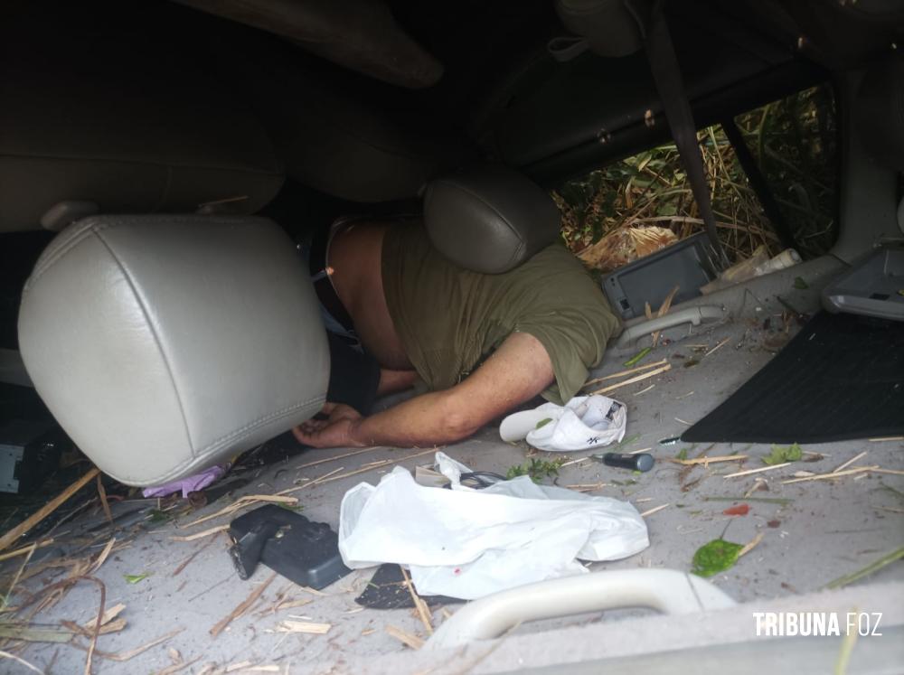 Segundo informações, o condutor de um Toyota / Corolla, modelo Fielder, de cor preto, perdeu o controle da direção e acabou capotando, parando em uma ribanceira, em meio a um matagal.