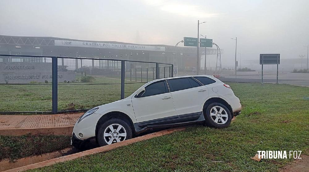 Neblina densa faz veículo cair em vala perto da Ponte da Integração no lado paraguaio da fronteira
