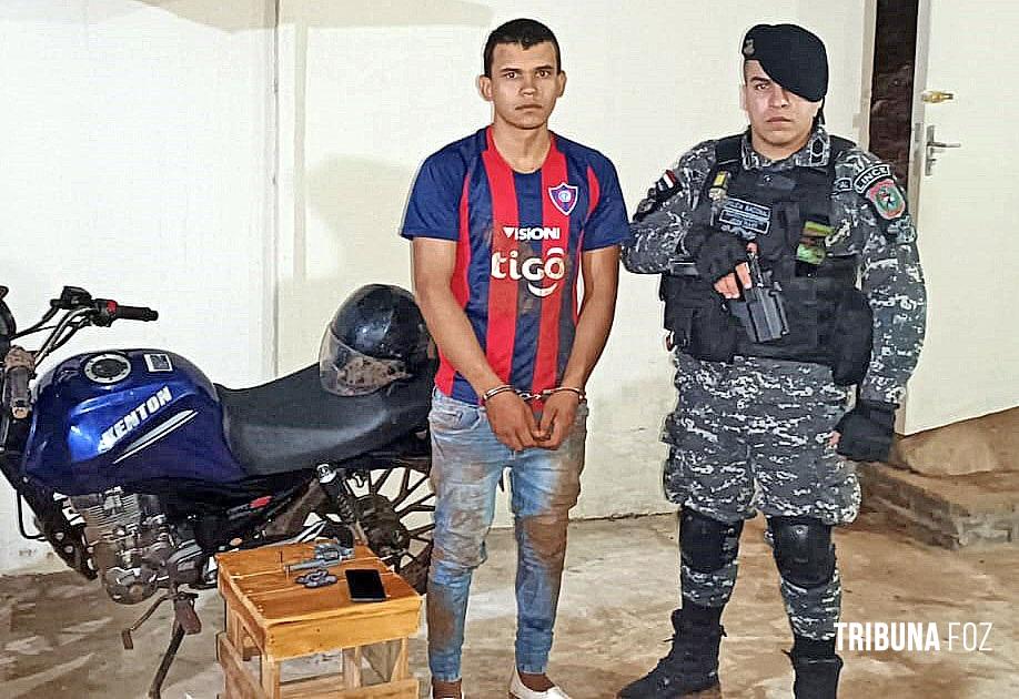 O homem, identificado como Jorge Darío Alderete González, de 18 anos de idade, residente na cidade de Hernandarias, foi preso após uma perseguição policial que se estendeu por aproximadamente cinco quarteirões. Ele não apresentou nenhum documento pessoal ou o registro da motocicleta no momento da abordagem policial.
