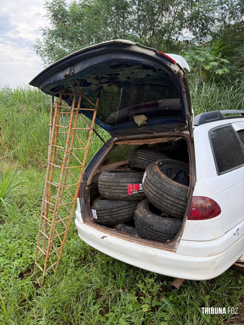 PF e BPFRON apreendem veículo e dezenas de pneus contrabandeados do Paraguai em Foz do Iguaçu