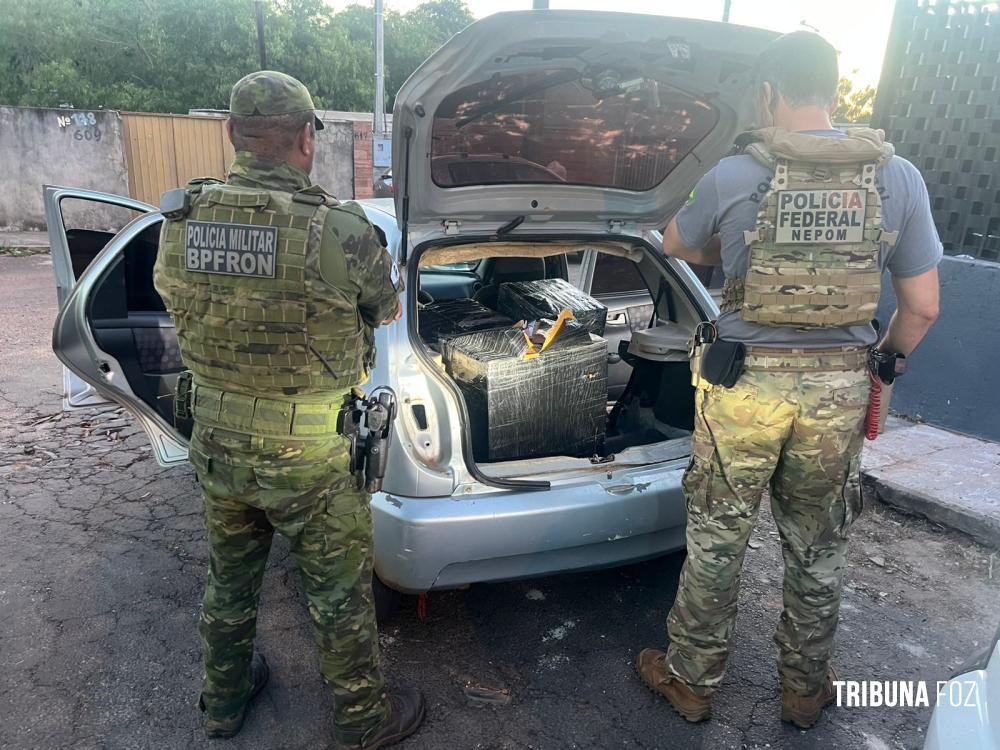 As equipes realizavam patrulhamento quando observaram uma embarcação atravessando o Rio Paraná em direção ao Brasil, na altura da região conhecida como Favela do Queijo. Ao se deslocarem para o local, os policiais avistaram um veículo Celta prata, com placas brasileiras, deixando a área em alta velocidade.