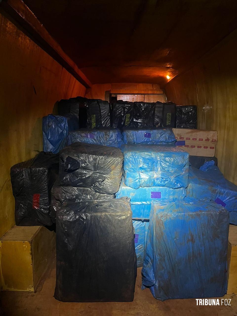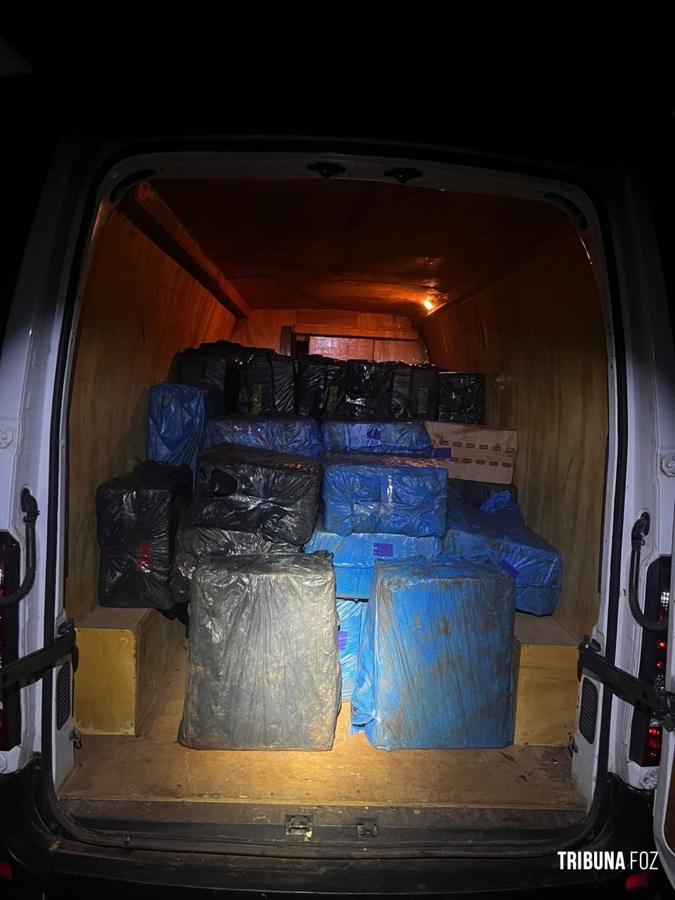 No interior do automóvel, os policiais encontraram uma carga de cigarros contrabandeados do Paraguai, totalizando aproximadamente 110 caixas.