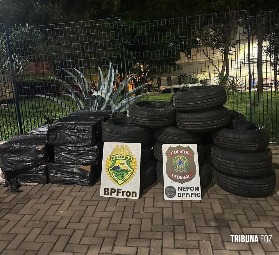 PF e PM apreendem pneus e cigarros contrabandeados em Foz do Iguaçu