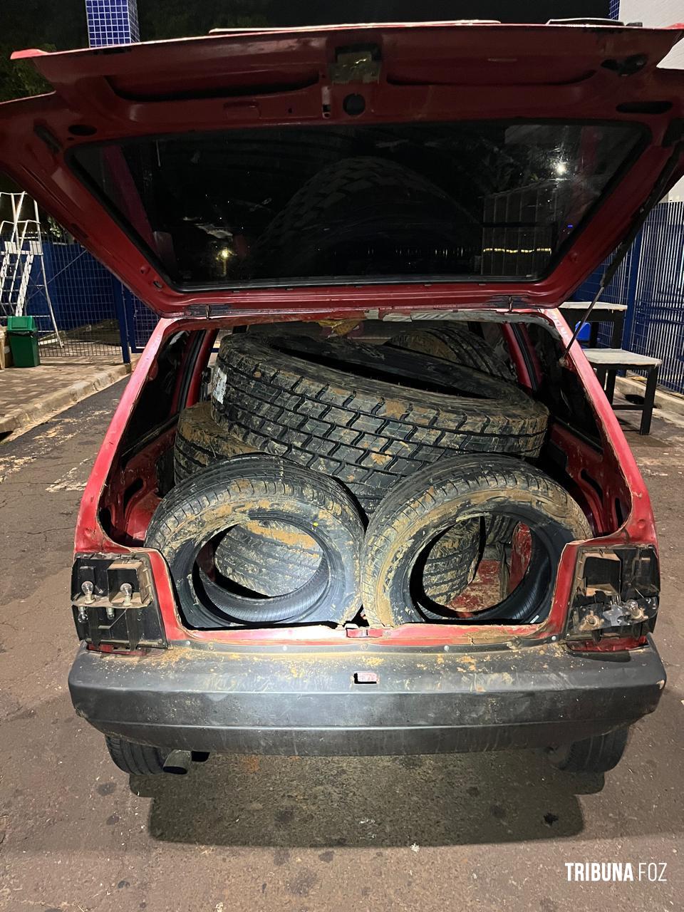 PF e PM detém paraguaio com veículo carregado com pneus contrabandeados próximo a Av. Beira Rio