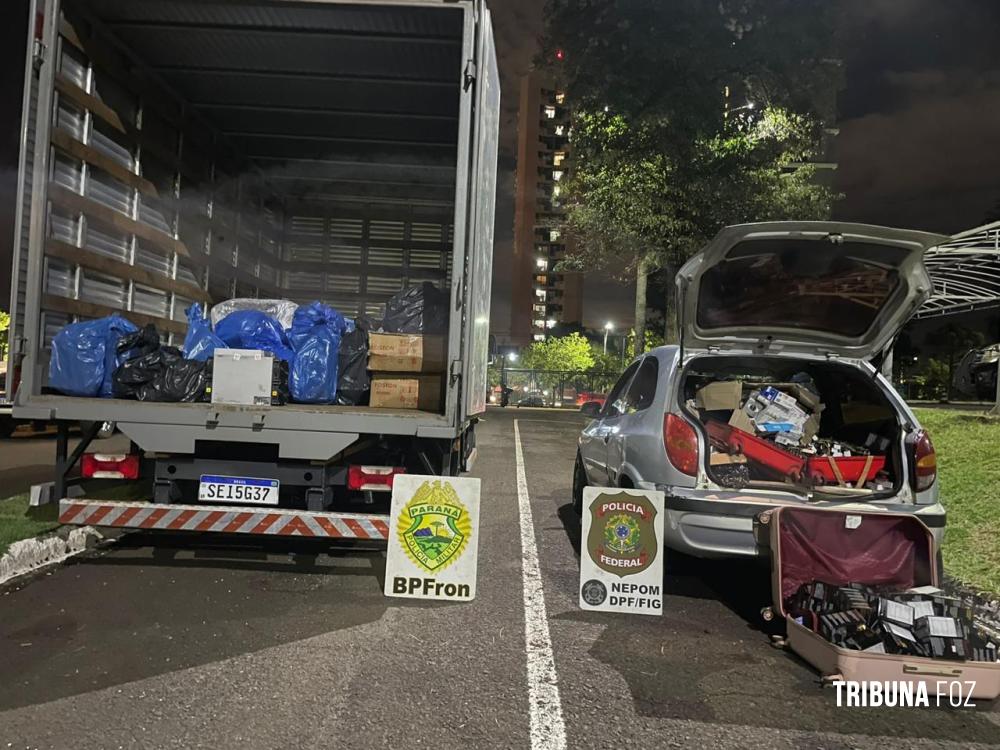 PF e PM prendem dois indivíduos e apreende grande quantidade de mercadorias irregulares em Foz do Iguaçu