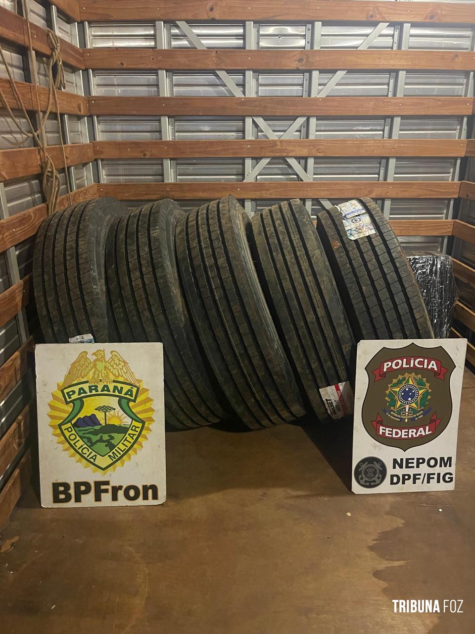 PF e PM prendem dois paraguaios e descobrem depósito de pneus contrabandeados em Foz do Iguaçu