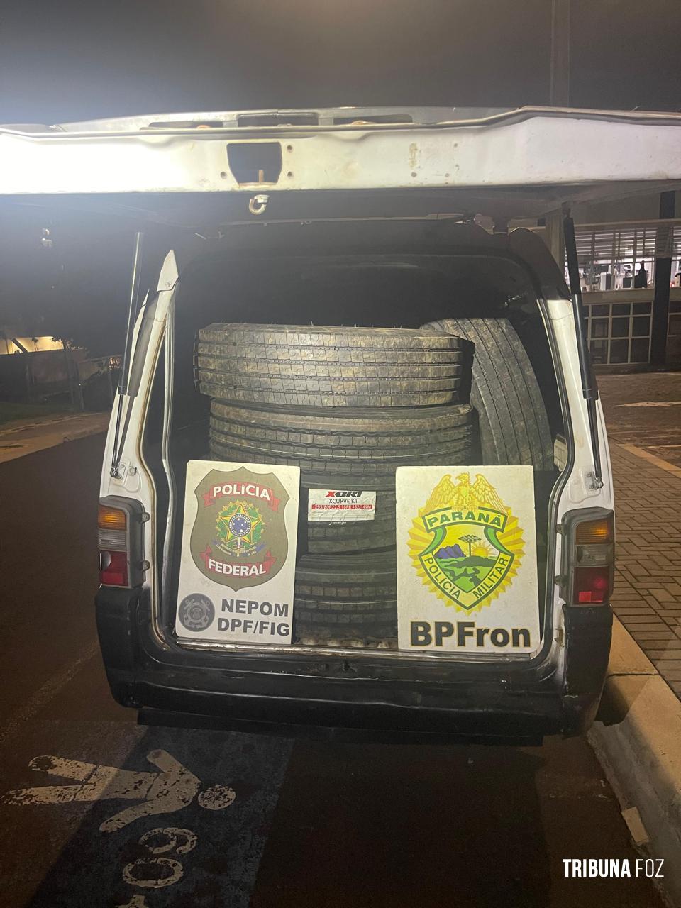 A van e os pneus apreendidos foram encaminhados à Receita Federal para os procedimentos cabíveis.