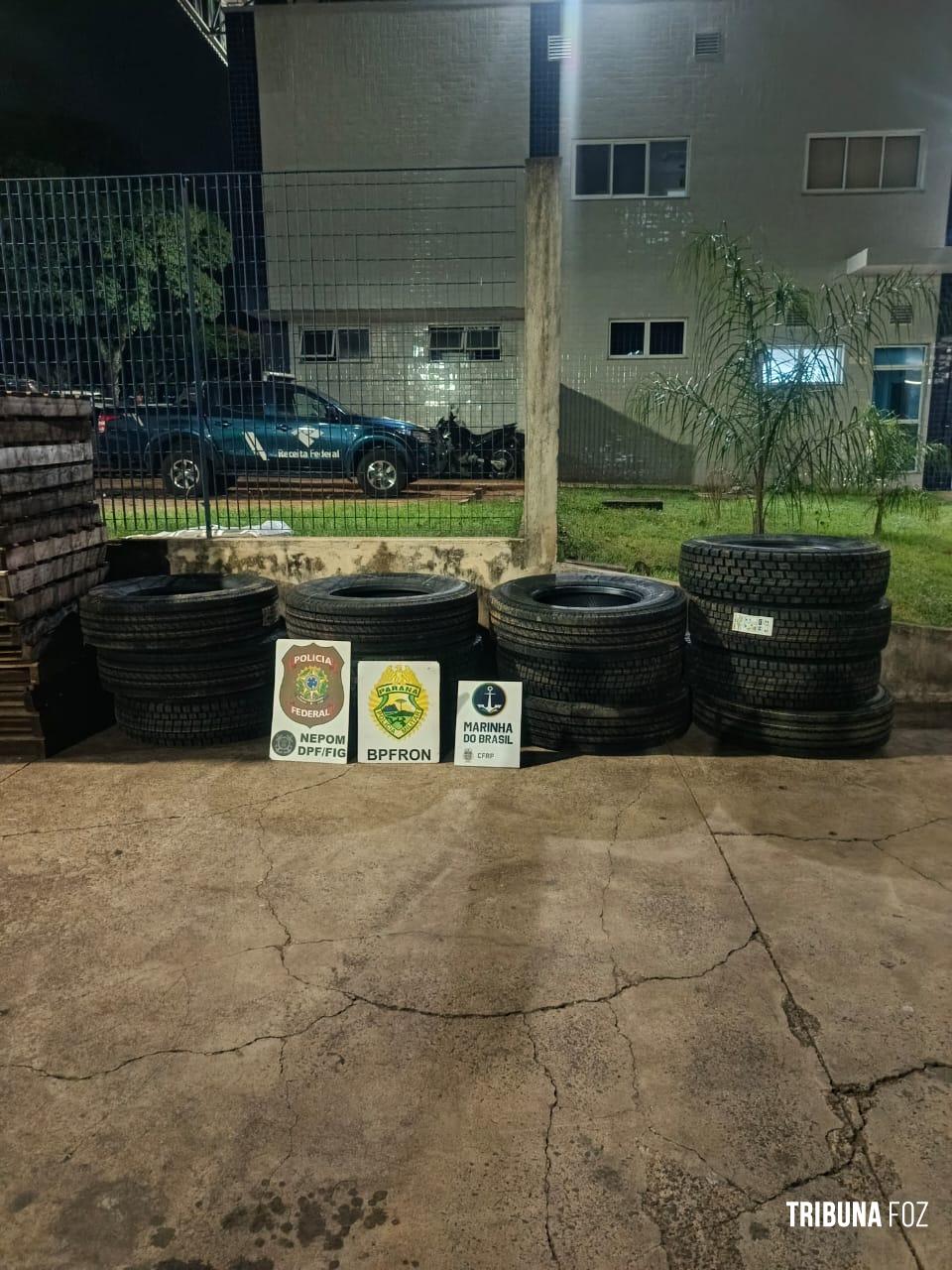 Ao todo, 18 pneus de caminhão, juntamente com o veículo utilizado no transporte, foram encaminhados à Receita Federal do Brasil (RFB) para as providências legais cabíveis.