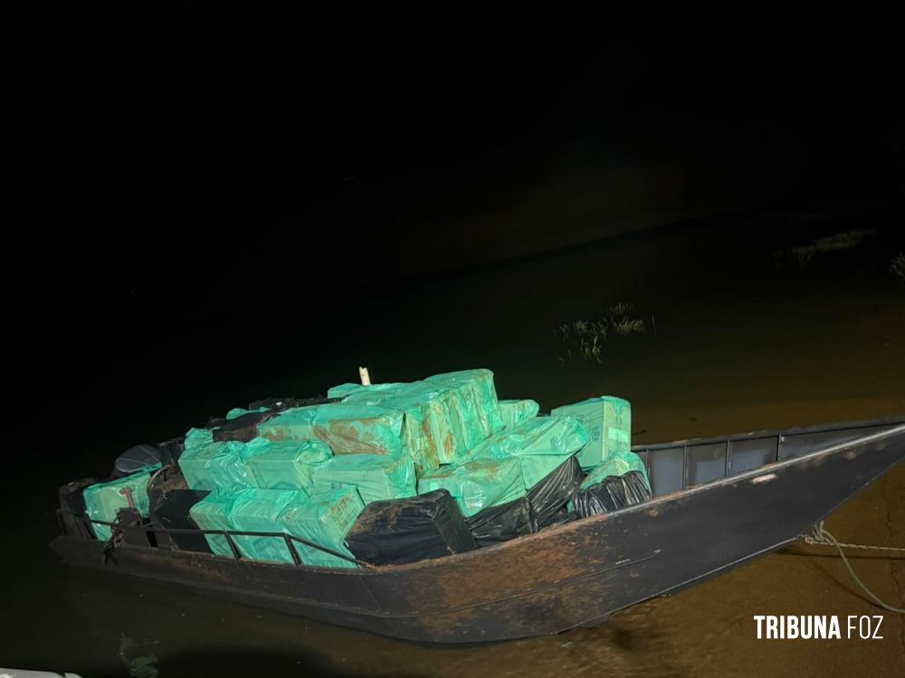 Barco com motor de 200HP transportava carga de origem paraguaia e foi interceptado no lago de Itaipu durante patrulhamento noturno