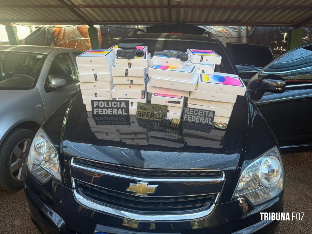 PF, RF e PM prendem duas pessoas e apreendem veículo com mercadorias descaminhadas em Foz do Iguaçu