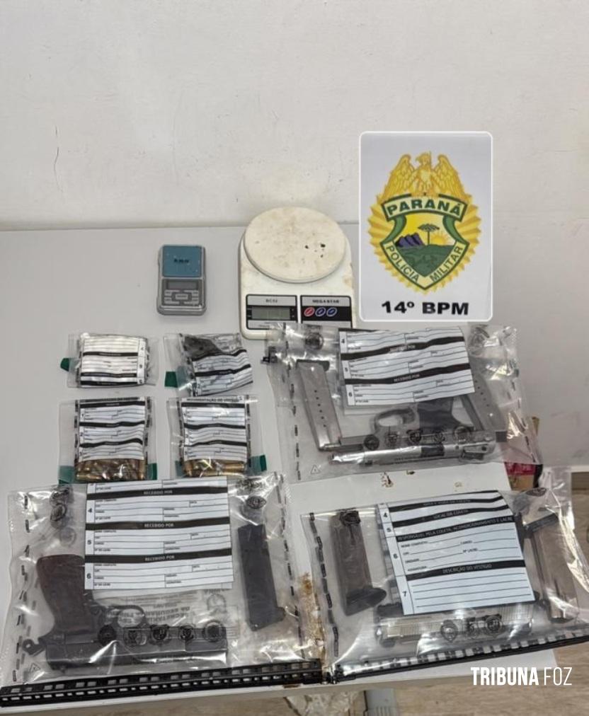 Na manhã de ontem, sábado 25 de abril de 2026, por volta das 08h:00min, equipes da Polícia Militar realizaram a apreensão de armas de fogo e entorpecentes no Morenitas II, no Bairro Porto Meira, na região sul de Foz do Iguaçu.