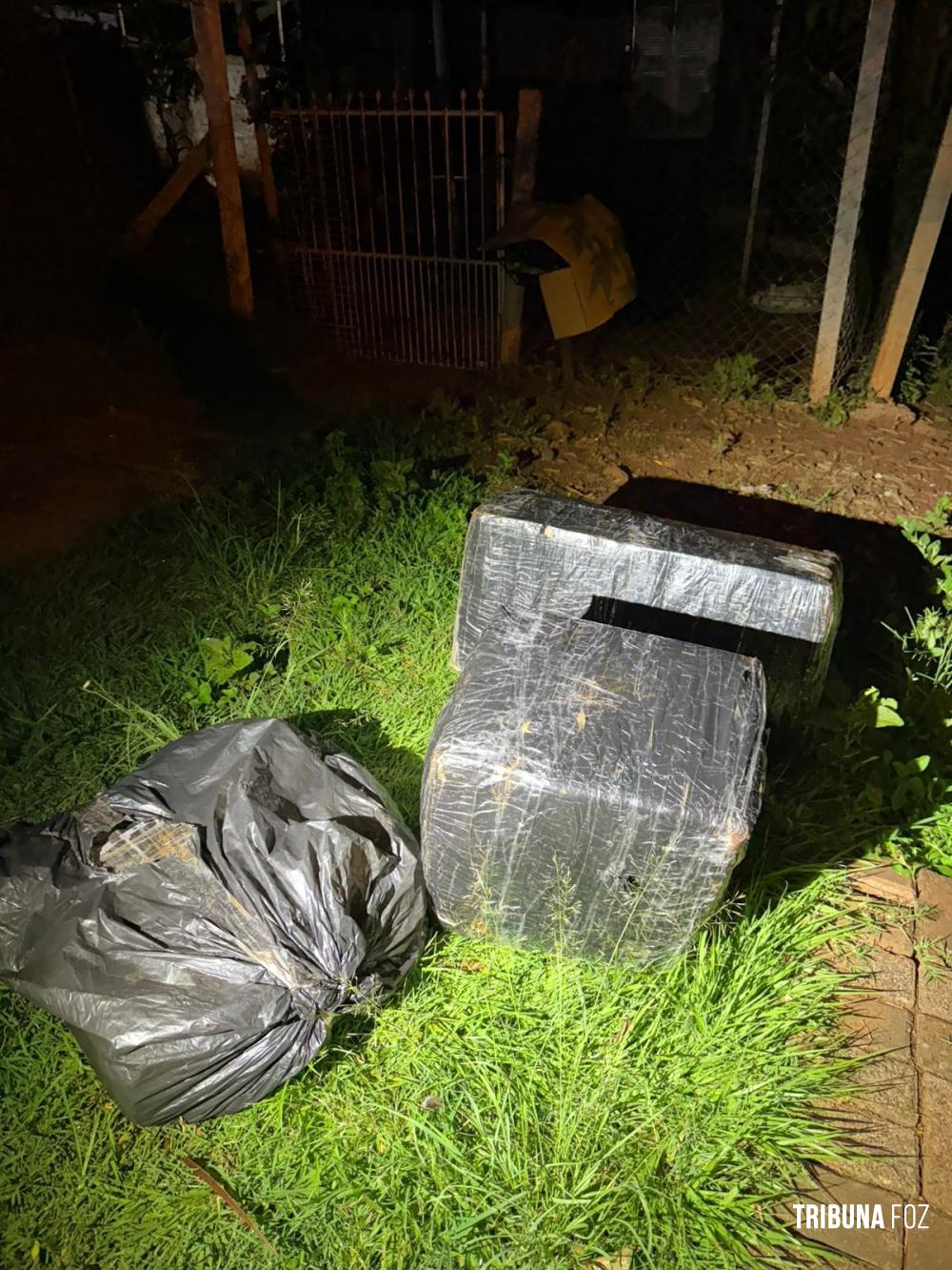 Diante da movimentação suspeita, os policiais deslocaram-se até a margem do Rio Paraná e adentraram a mata próxima ao local, onde localizaram três volumes abandonados em uma trilha em meio à vegetação.