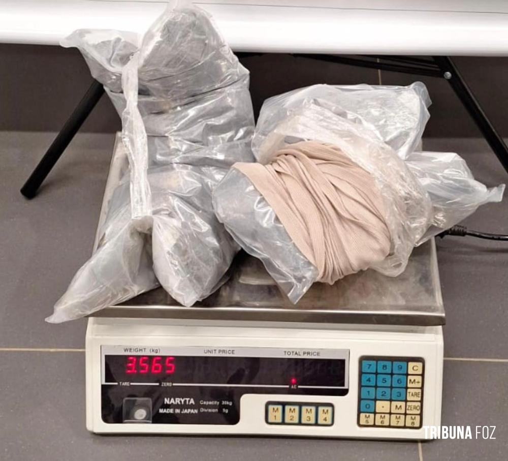 Prisões ocorreram durante fiscalização de rotina; uma mulher levava 3,5 Kg de haxixe e um homem transportava eletrônicos sem comprovação fiscal