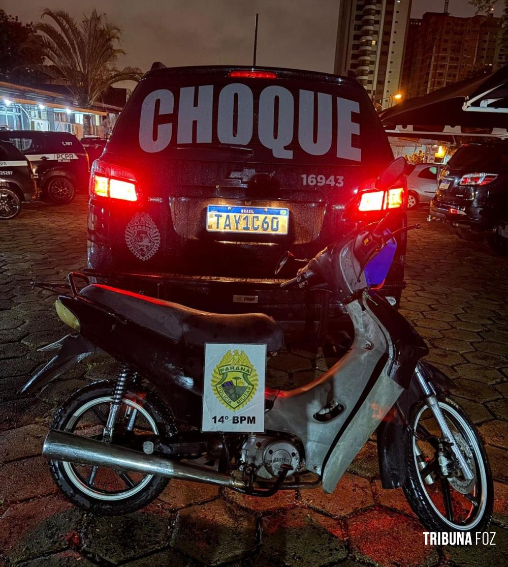 Na madrugada de ontem, sábado 14 de fevereiro de 2026, por volta da 01h:20min, a Polícia Militar do Paraná, por meio da equipe CHOQUE do 14º Batalhão, recuperou uma motoneta com registro de furto na região da Braz, em Foz do Iguaçu.