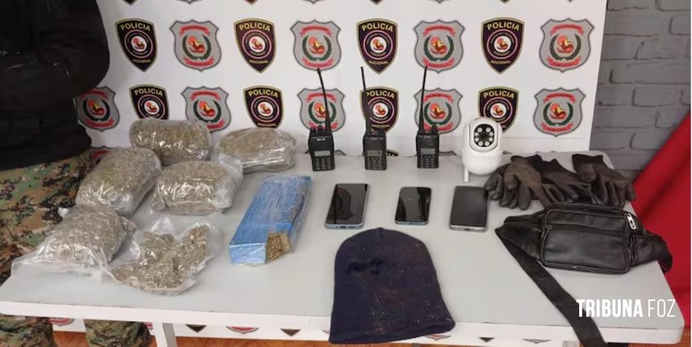 Na quadra de peteca foram apreendidos uma balança de precisão, cinco telefones celulares e G$ 750 mil guaranis. Já na residência as margens do Rio Paraná, abordaram o brasileiro Rodolfo de Almeida Oliveira, de 24 anos de idade, qual confessou ser integrante da facção PCC (primeiro Comando da Capital). Com o brasileiro foi apreendido um radio HT, munições calibre 9mm e 32, um tablete de maconha prensada e 6 bolsas de maconha não prensada e varios telefones celulares.
