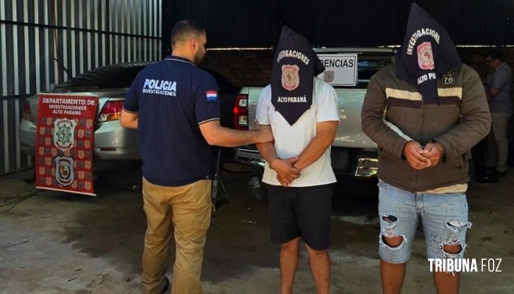Na ação policial foram presos o dono da oficina mecânica, chapeação e pintura Fernando Romero Recalde, de 29 anos de idade e Miguel Armando Lopez Ferreira, de 24 anos. No local foi apreendido uma caminhonete Toyota / Hilux, de cor prata, sem placas, chassi Nº 8AJBA3CD801689378, denunciada como furtada em data de 12/10/2025 do estacionamento do Casino Acaray e o automóvel Toyota / Allion, cor prata, sem placa, chassi Nº ZRT2603057033, com queixa de roubo agravado ocorrido dia 11/10/2025 no Km 7.