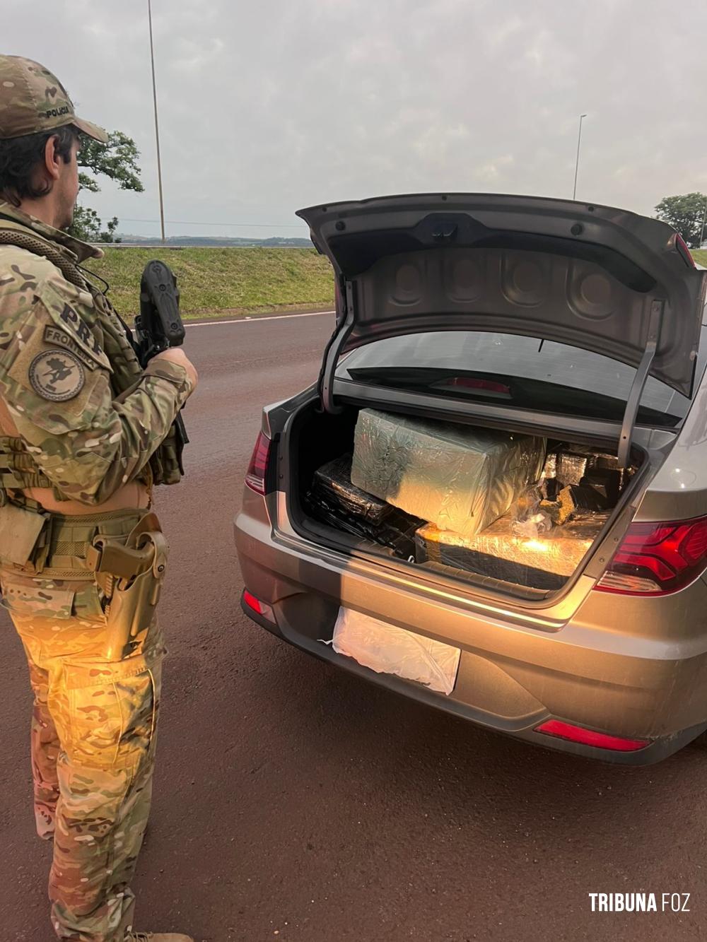 As equipes realizavam ação de combate ao crime na rodovia quando perceberam um veículo suspeito que carregava muito peso. O carro de passeio foi abordado e estava com o porta-malas lotado de drogas. Os dois ocupantes, de 18 e 21 anos, disseram que pegaram o veículo carregado em Foz do Iguaçu/PR e o levariam até São Paulo/SP.