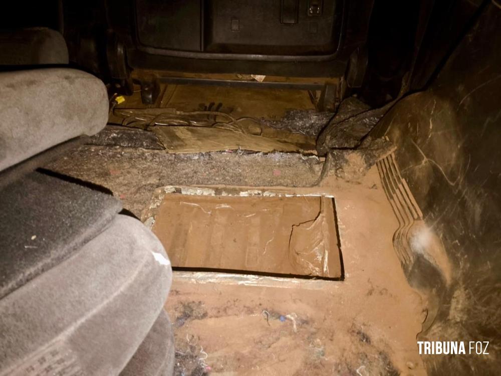 A ação ocorreu durante fiscalização de rotina. No momento da abordagem, os servidores localizaram um fundo falso no porta-malas do automóvel, onde estava escondida grande quantidade da droga, totalizando 148,4 Kg.
