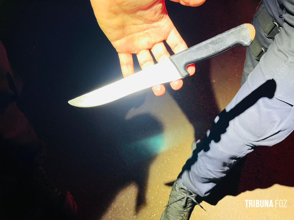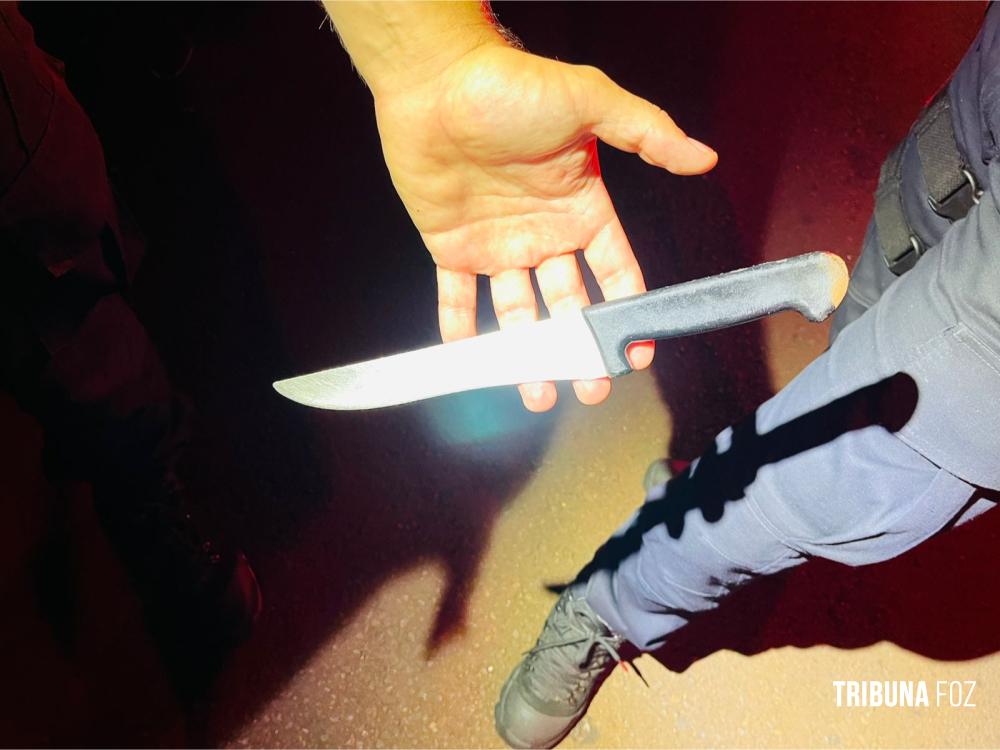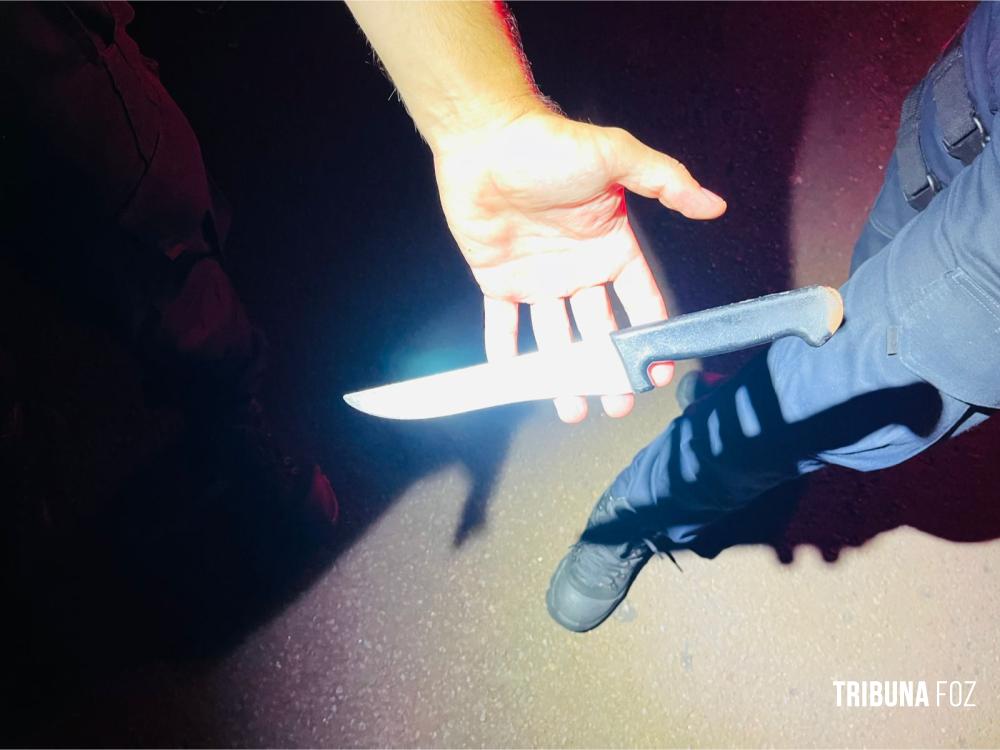 Por precaução, os guardas municipais recolheram a faca que o homem carregava, evitando qualquer risco de que ele pudesse acabar se machucando ou causar algum problema.