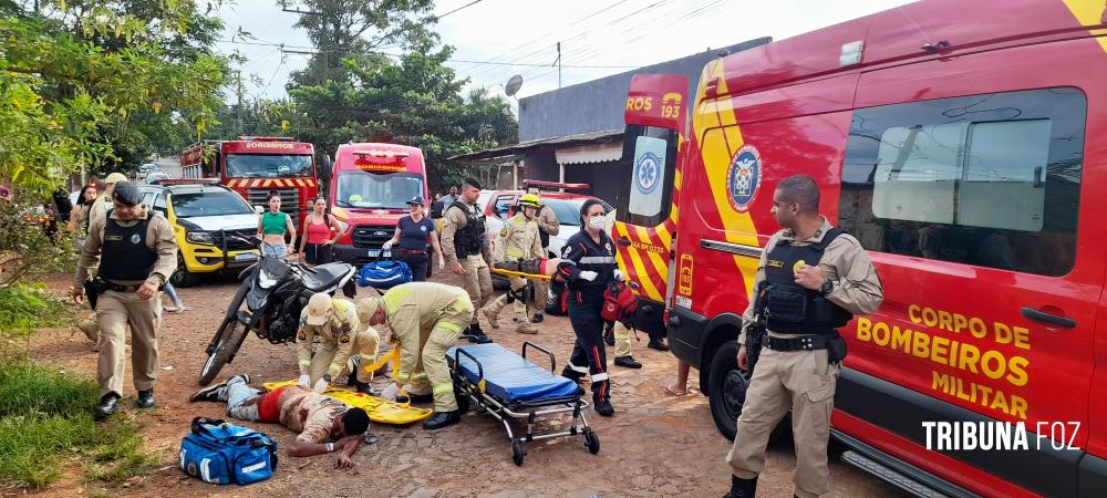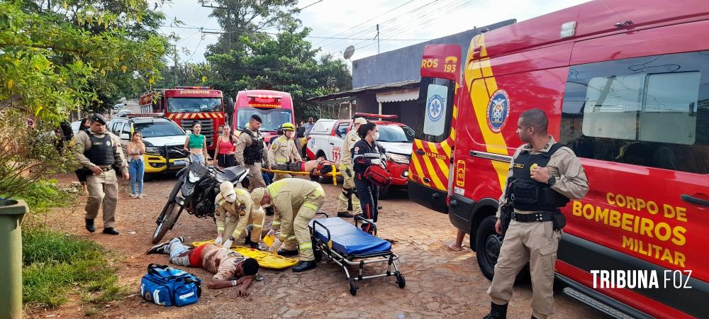Na manhã deste sábado, 25 de abril de 2026, por volta das 08h:45min, o COBOM (Central de Operações do Corpo de Bombeiros) de Foz do Iguaçu foram acionados pelo telefone de emergência 193, para darem atendimento a um grupo de pessoas alvejadas por disparos de arma de fogo na Rua Ana Rogia, no Morenitas II, região do Bairro Porto Meira, em Foz do Iguaçu.
