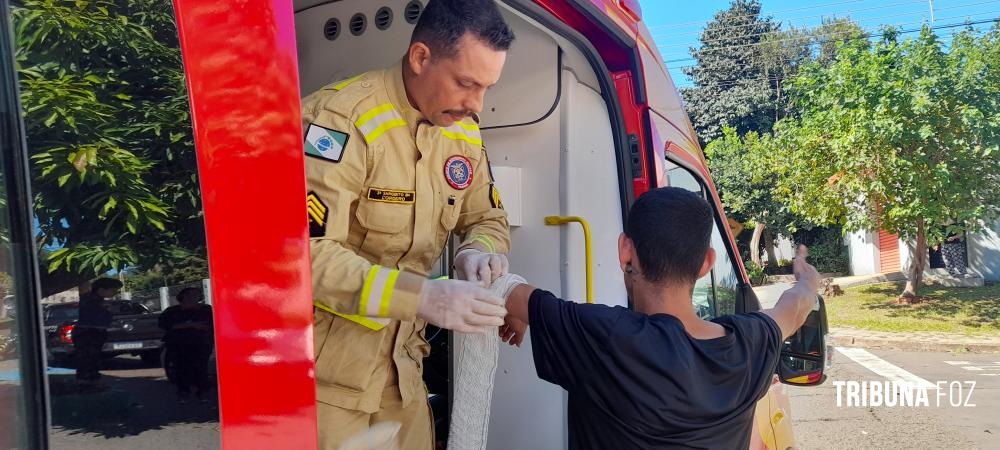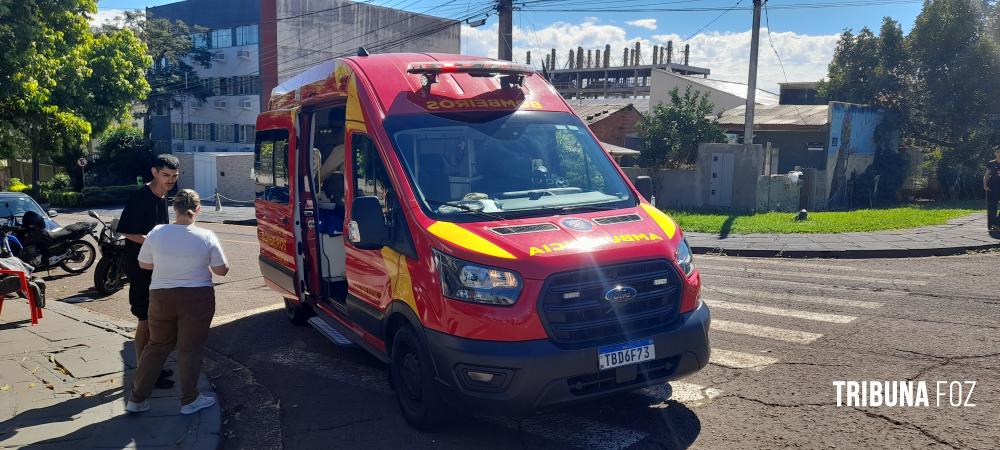 No final da manhã desta segunda-feira, 27 de abril de 2026, por volta das 11h:45min, socorristas do Siate de Foz do Iguaçu foram acionados para deslocarem até a Rua Irlan Kalichewski, cruzamento com a Rua Heleno Schimmelpheng, na Vila Yolanda, para darem atendimento a um acidente de trânsito envolvendo duas motocicletas.