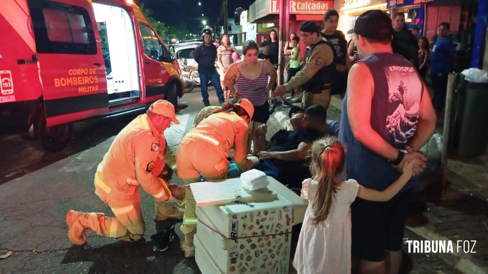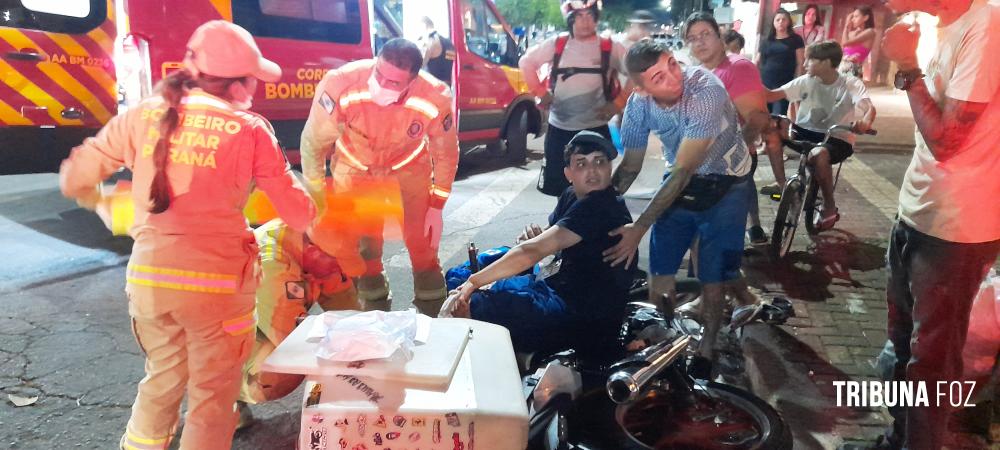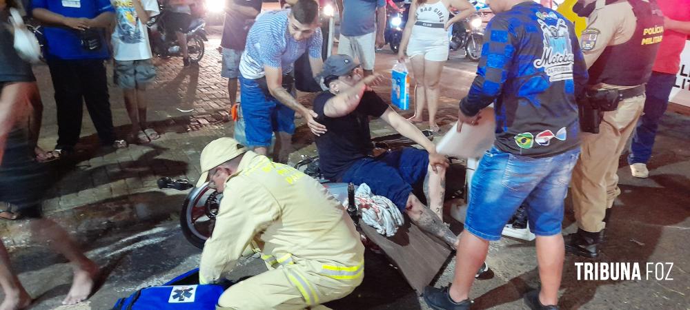 Siate socorre duas vítimas após colisão de duas moto na Av. Morenitas em Foz do Iguaçu