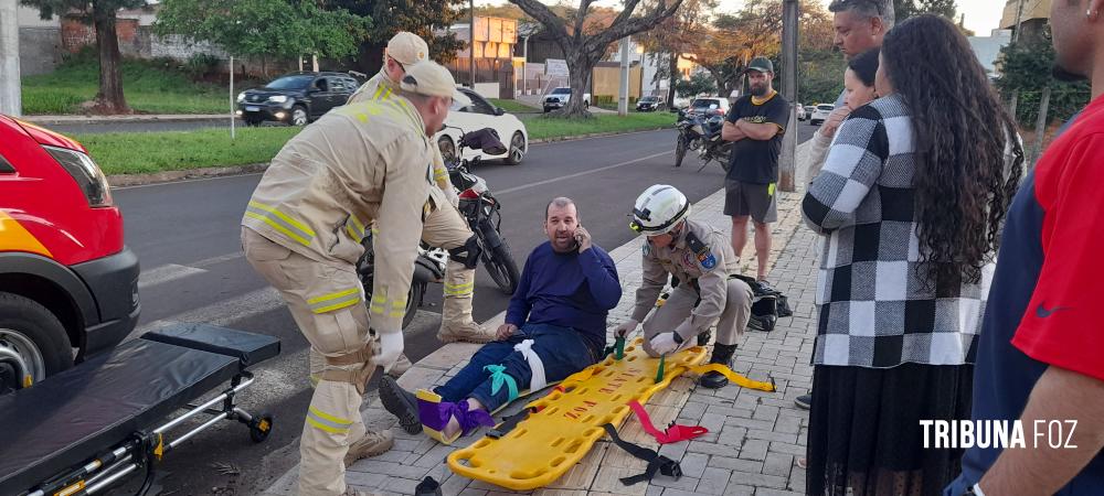 No final da tarde de ontem, segunda-feira 22 de setembro de 2025, por volta das 17h:50min, socorristas do Siate de Foz do Iguaçu foram acionados para deslocarem até a Rua Capitão Jacob Becker, cruzamento com a Avenida Iguaçu, na Vila Yolanda, para darem atendimento a um acidente de trânsito, tipo colisão envolvendo uma motocicleta e um automóvel.