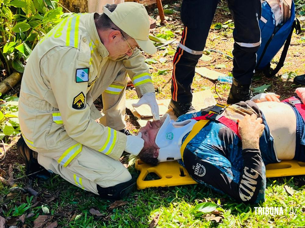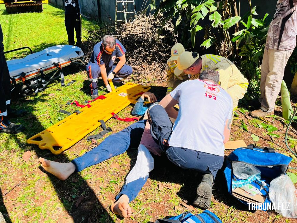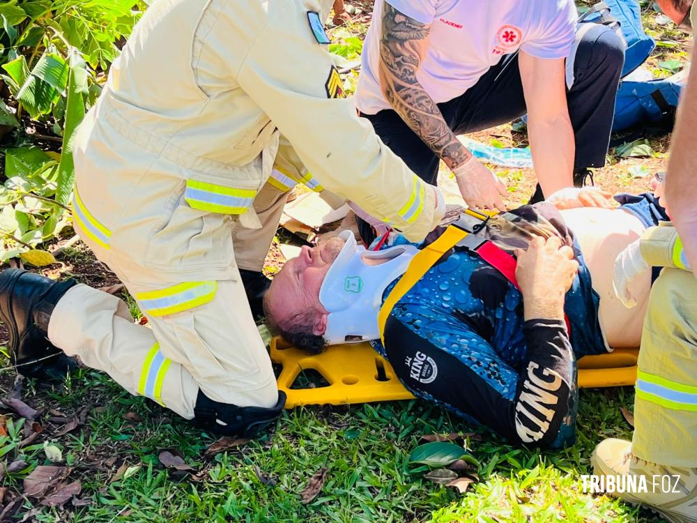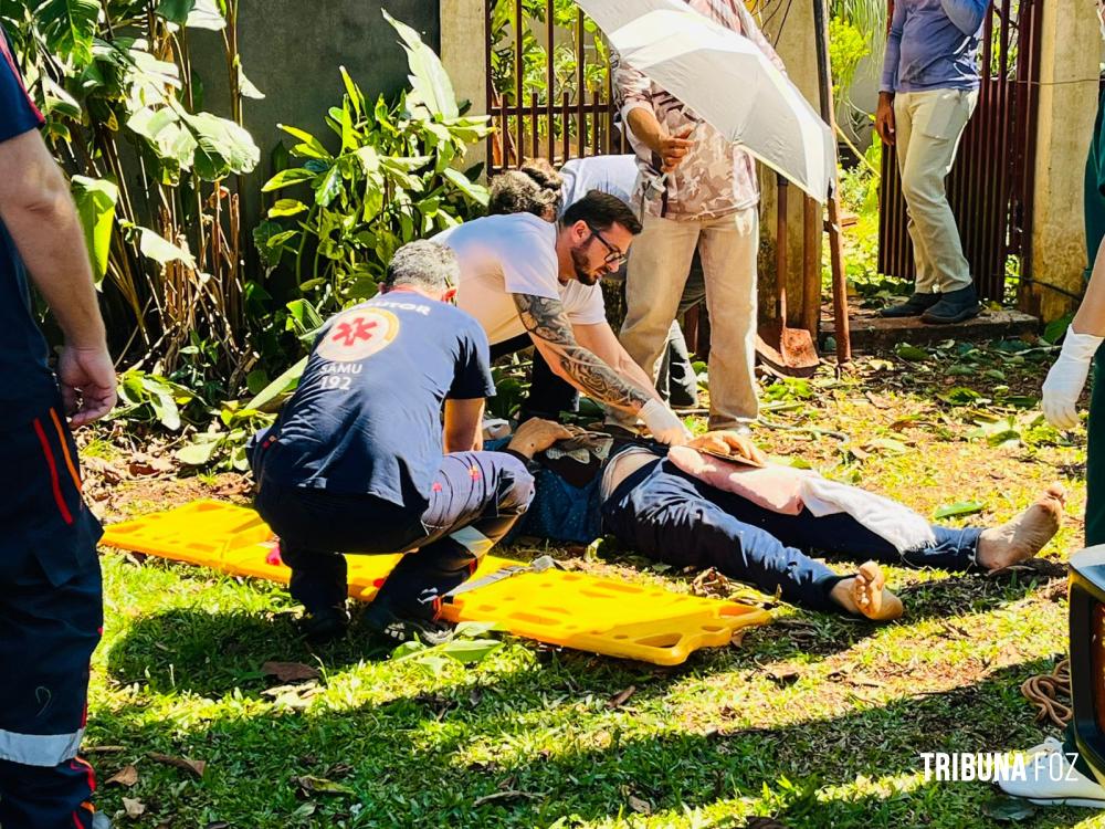O homem, de 55 anos de idade, recebeu os primeiros atendimentos ainda no local e em seguida foi encaminhado para o Pronto Socorro do Hospital Municipal para avaliação mais detalhada.